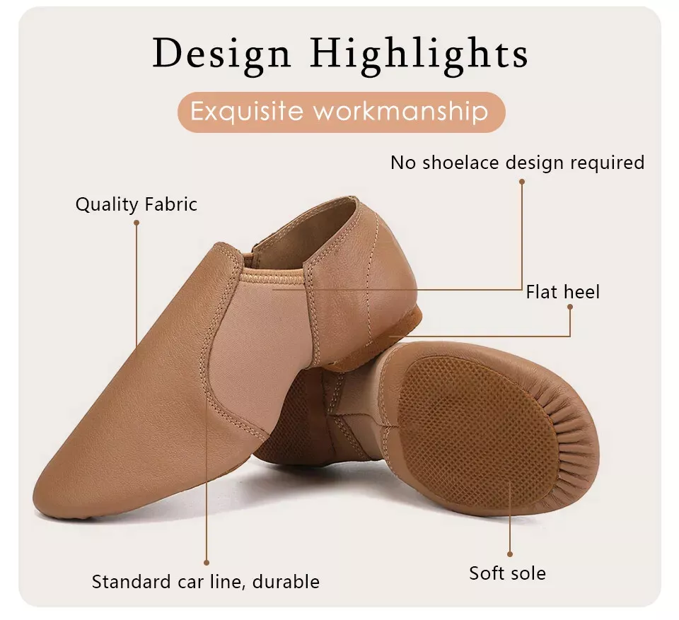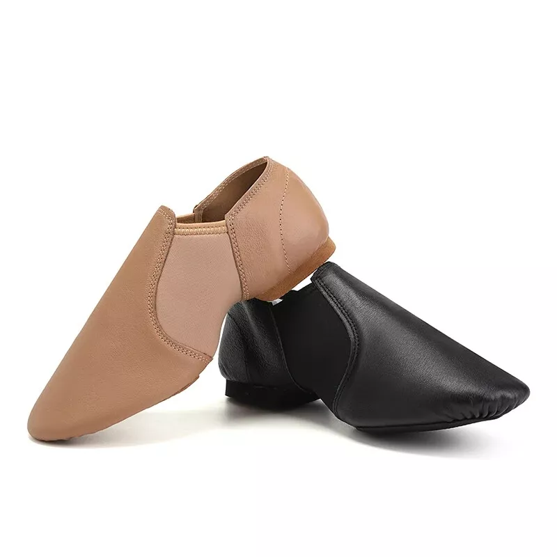 รองเท้าเต้นแจ๊สแบบละตินสำหรับผู้ชายและผู้หญิงแบบพรีเมี่ยมหนังแท้ด้านบนยืดหยุ่นพร้อมซับในผ้าเดนิมและผ้าฝ้ายสไตล์สลิปออนคลาสสิก