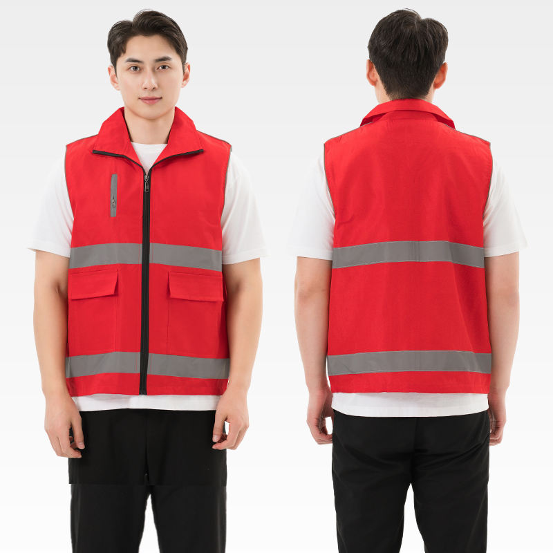 เสื้อกั๊กโพลีเอสเตอร์พรีเมี่ยมสำหรับผู้ชายเสื้อแจ็กเก็ตนิรภัยโลโก้ตามสั่งสำหรับอุตสาหกรรมอาสาสมัครในฤดูใบไม้ผลิ