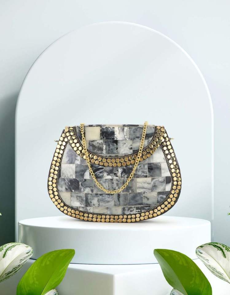 Premium Metal Beaded Ladies Clutch Handbag in Attractive Silver Color & Modern & Solid Design From