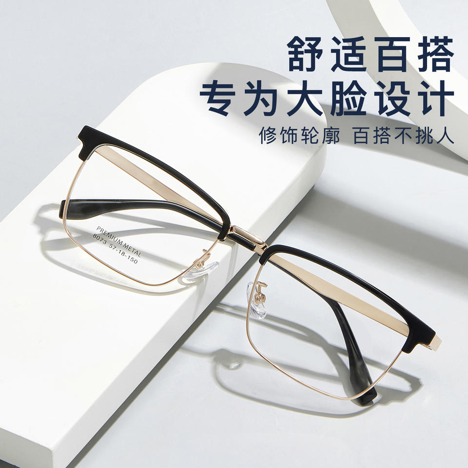 กรอบแว่นตาโลหะพรีเมียมสำหรับผู้ชาย ทรงสี่เหลี่ยมเต็มกรอบ รุ่น 8073 ดีไซน์อัลลอยด์สวมใส่สบาย ผลิตที่ตานหยาง
