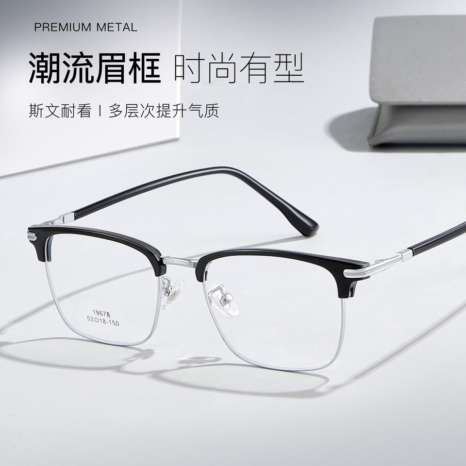 แว่นตาครึ่งกรอบโลหะพรีเมี่ยมสำหรับผู้ชายทรงสี่เหลี่ยม 19678 สวมใส่สบาย ดันหยาง