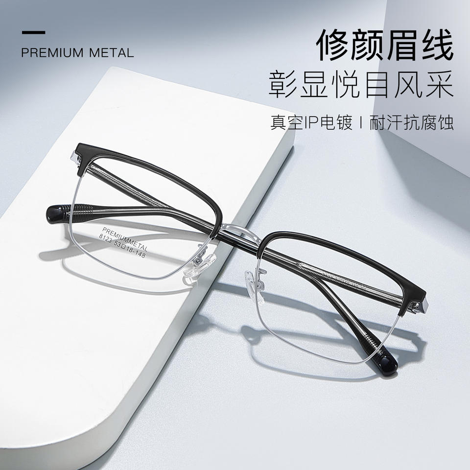 กรอบแว่นตาโลหะทรงสี่เหลี่ยมพรีเมียม รุ่น 8123 แบบเต็มกรอบ ทนทาน เลนส์เรซิ่นสำหรับทุกเพศ