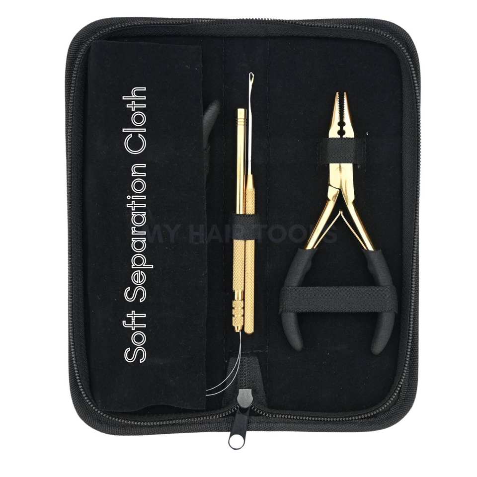 ชุดเครื่องมือต่อผมไมโครบีดแบบพรีเมียม พร้อมคีมจีบ ตัวถอด ห่วงดึง และอุปกรณ์ติดตั้งแบบตะขอ ทำจากสแตนเลส