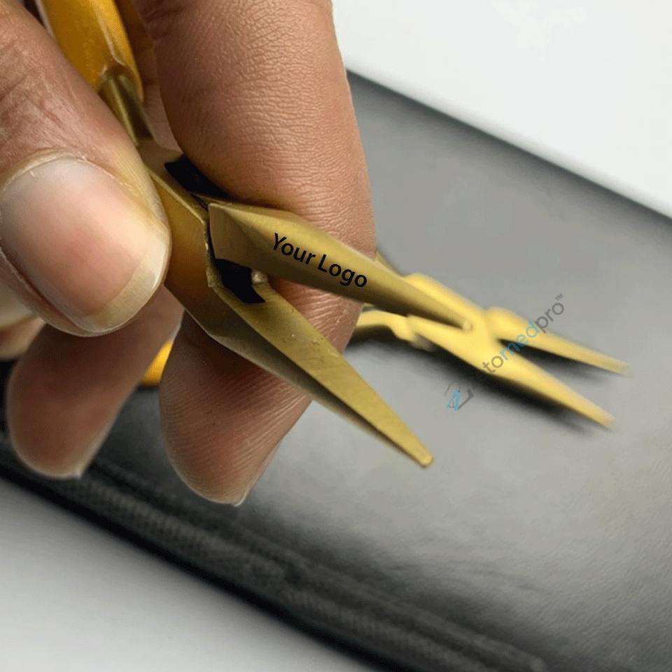 คีมปากแหลมไมโครเกรดพรีเมียม ผลิตจากเหล็กคุณภาพสูง ปลายแหลมแม่นยำ ด้ามจับตามหลักสรีรศาสตร์ พร้อมโลโก้สั่งทำพิเศษ เครื่องมือสำหรับทำเครื่องประดับ
