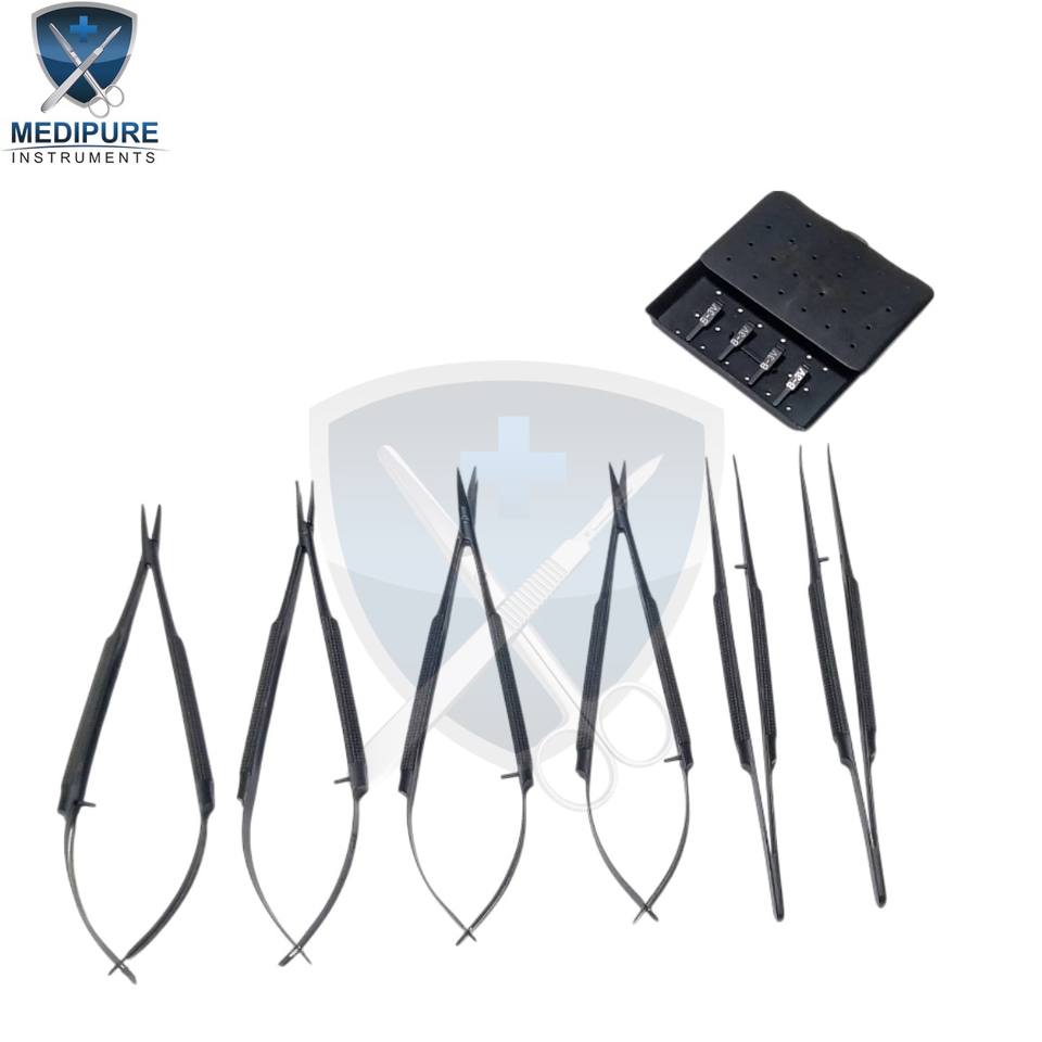 ชุดเครื่องมือผ่าตัดขนาดเล็กระดับพรีเมียม พร้อมที่จับเข็มขนาดเล็กและคลิปหนีบขนาดเล็กแบบอัลแคลนด์ สำหรับการผ่าตัดหลอดเลือดขนาดเล็ก ศัลยกรรมประสาท และศัลยกรรมตกแต่ง
