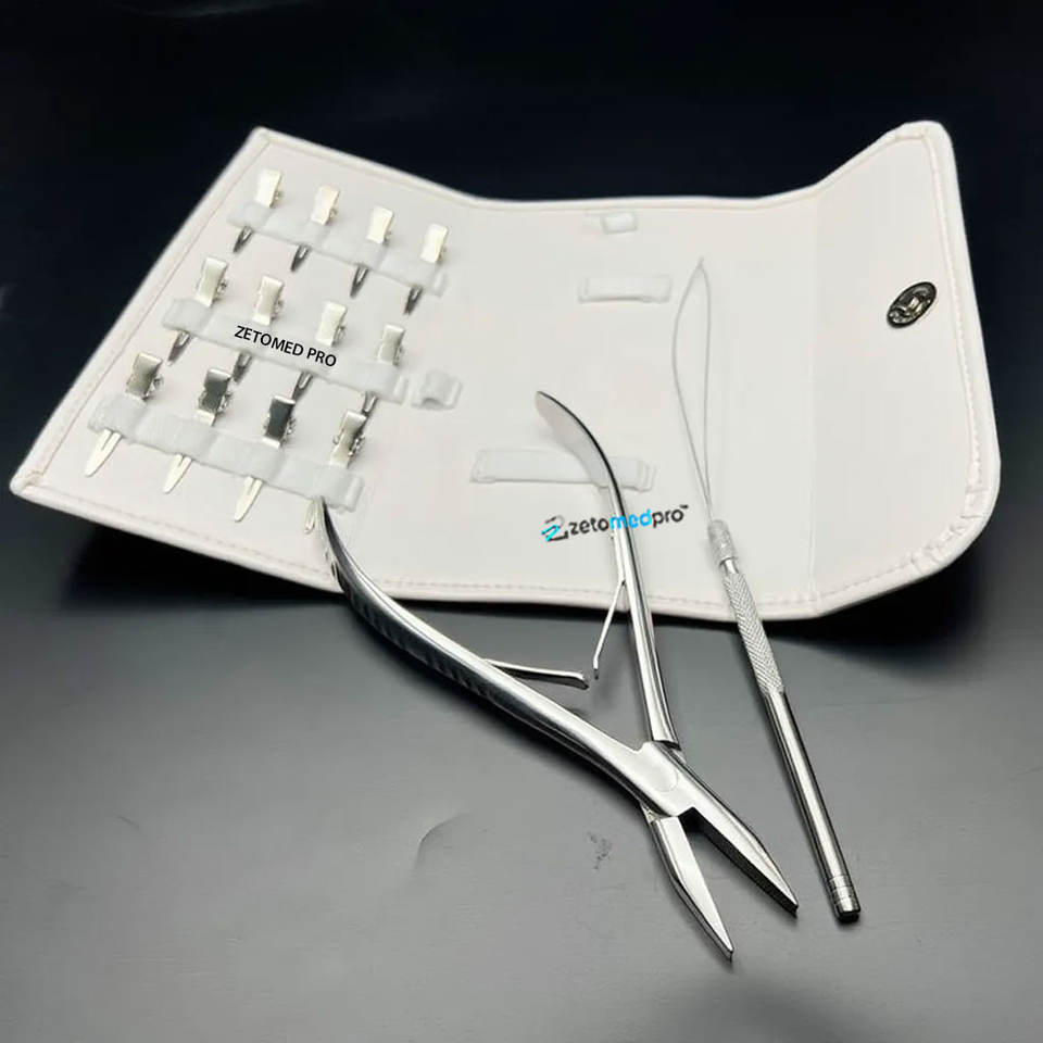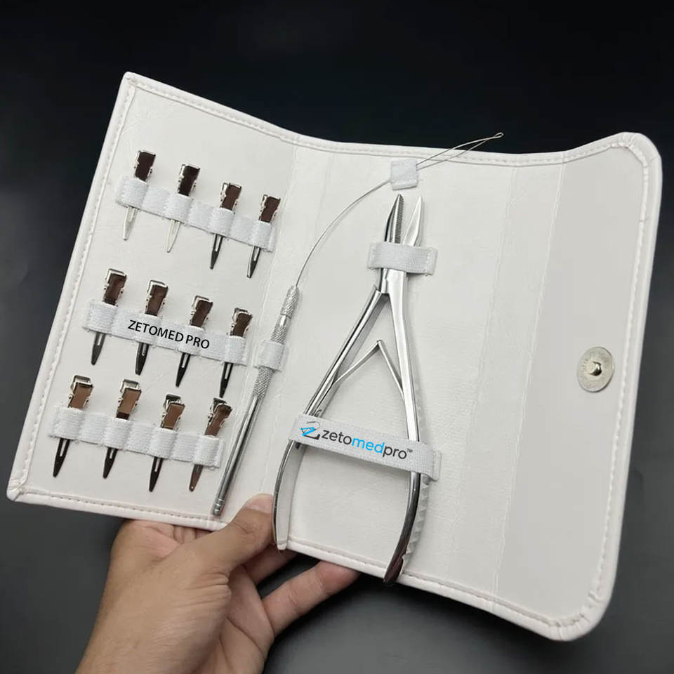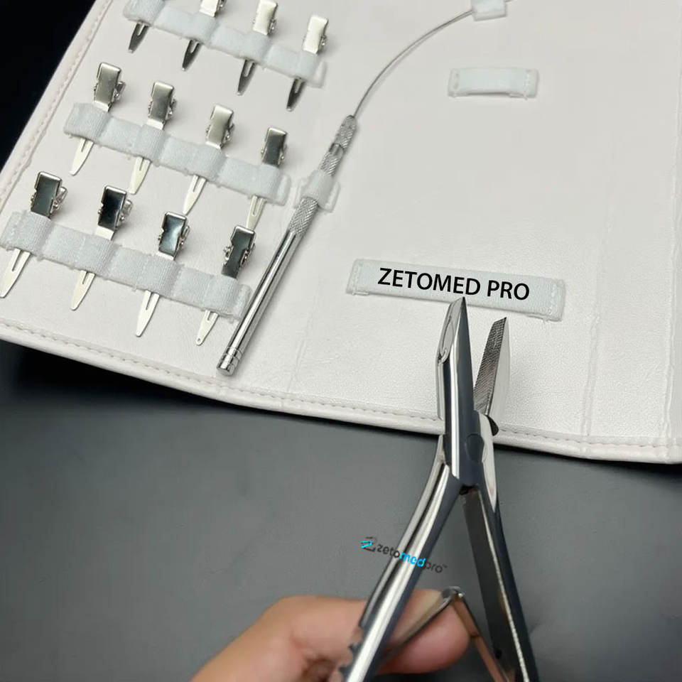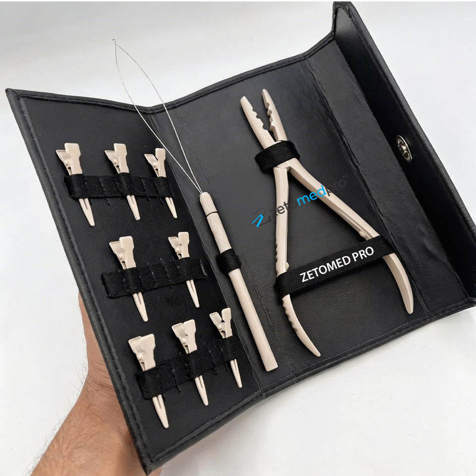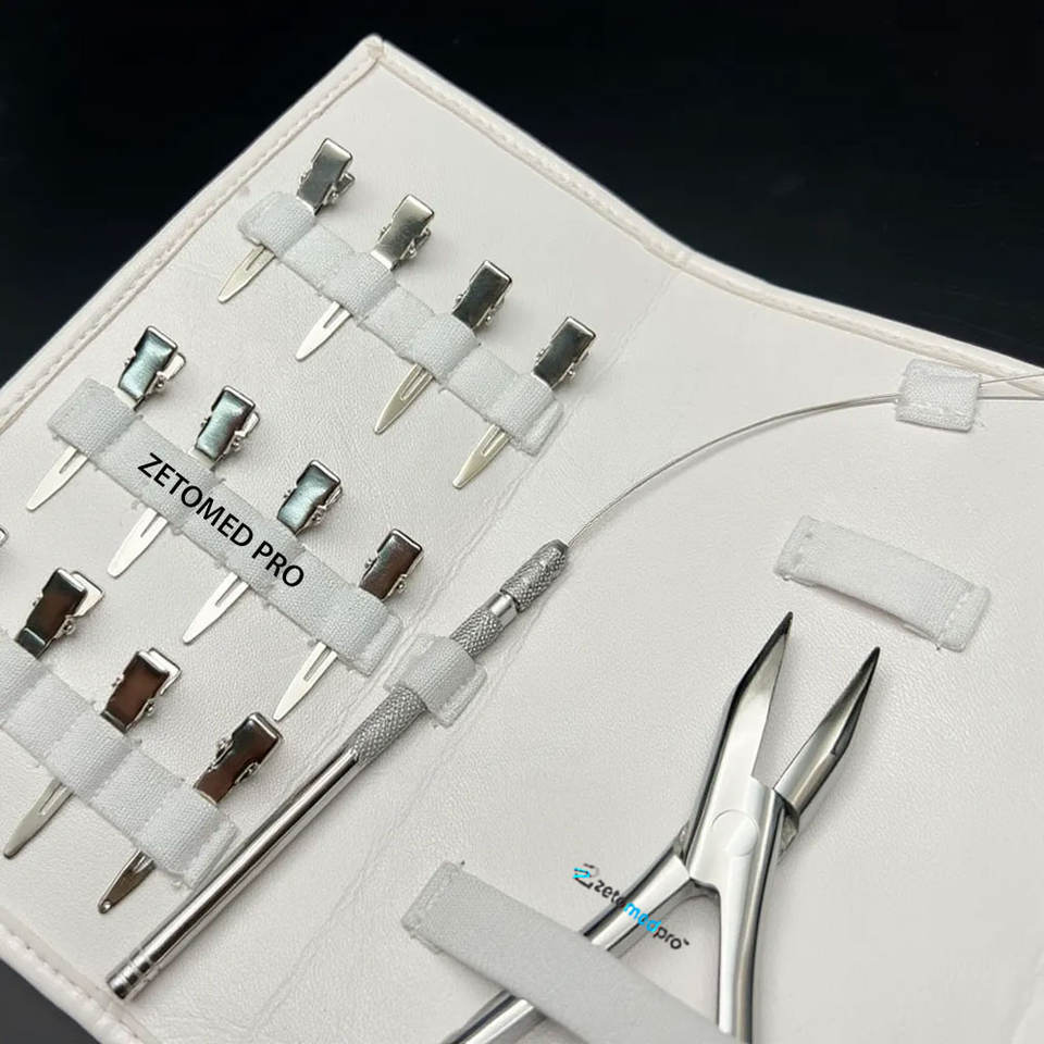 ชุดเครื่องมือไมโครลิงค์พรีเมียม สแตนเลสสตีล สำหรับต่อผมแบบปลายแบน พร้อมกล่องเก็บ โลโก้สั่งทำได้ พร้อมห่วงดึงและคลิป