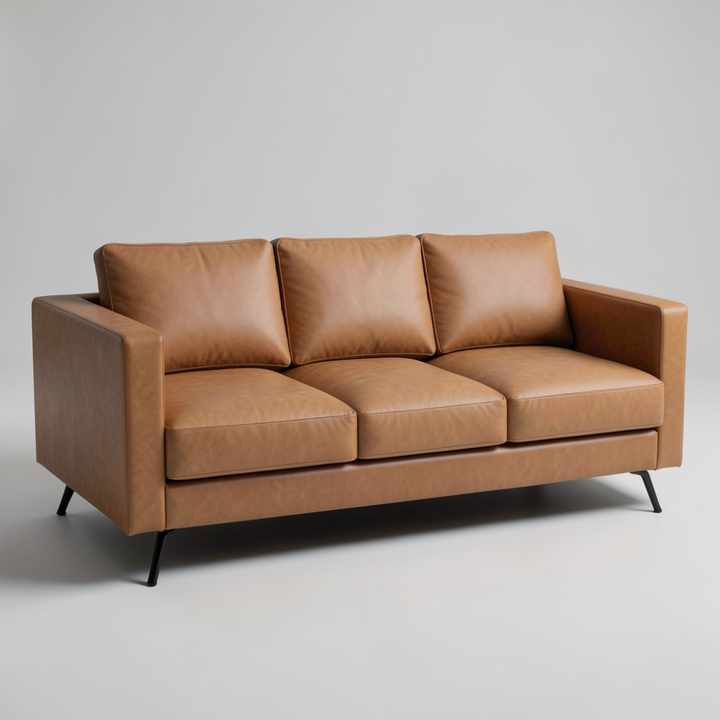 โซฟาหนังวัวแท้สไตล์โมเดิร์นกลางศตวรรษ ระดับพรีเมียม 3 ที่นั่ง สีน้ำตาล เฟอร์นิเจอร์ห้องนั่งเล่นสุดหรู