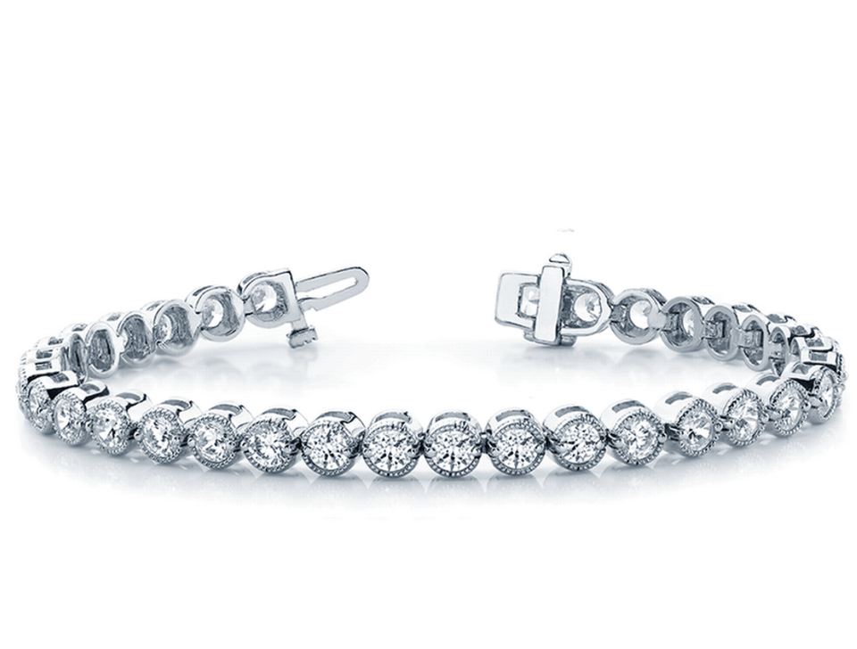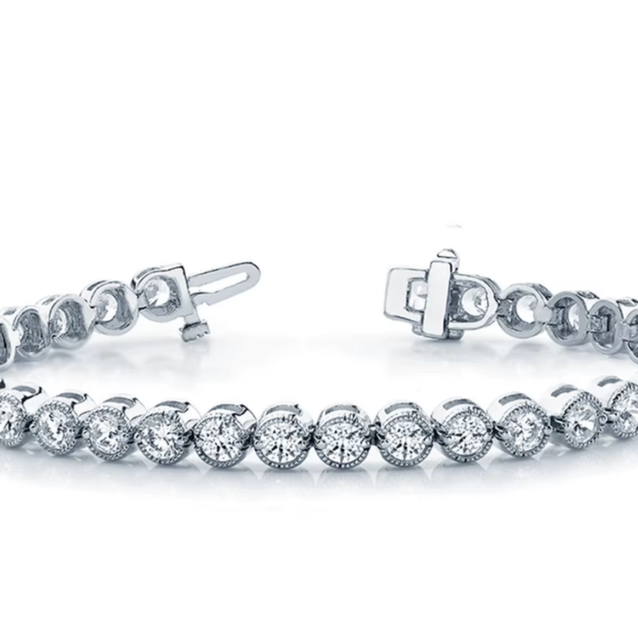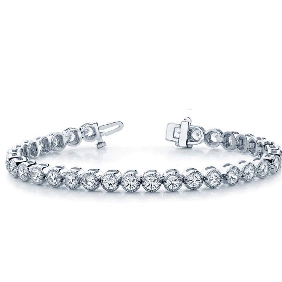สร้อยข้อมือเทนนิสทรงกลมประดับเพชรแบบมิลเกรนทองคำ 14K คุณภาพพรีเมียม