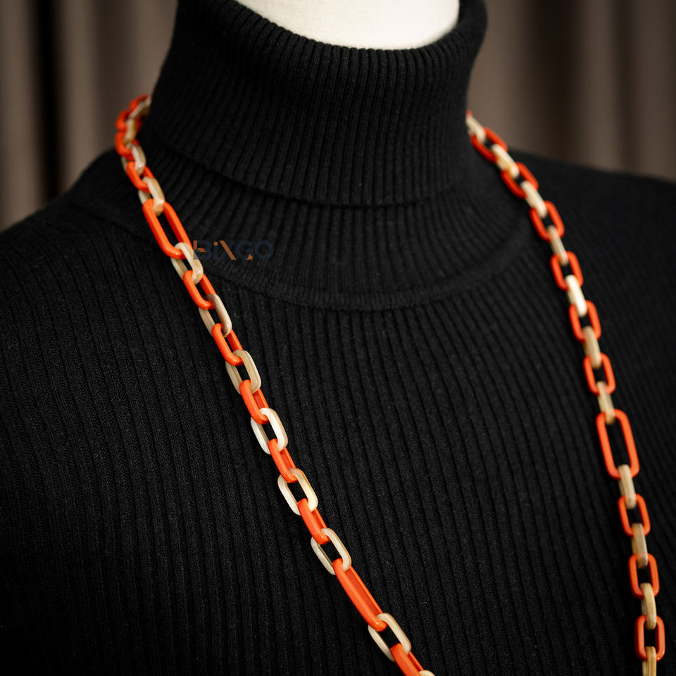 สร้อยคอโซ่อเนกประสงค์ขนาดเล็กพรีเมี่ยมทำจากเขาสังเคราะห์เครื่องประดับแฟชั่นทำด้วยมือสีส้มสดใสสำหรับผู้หญิง