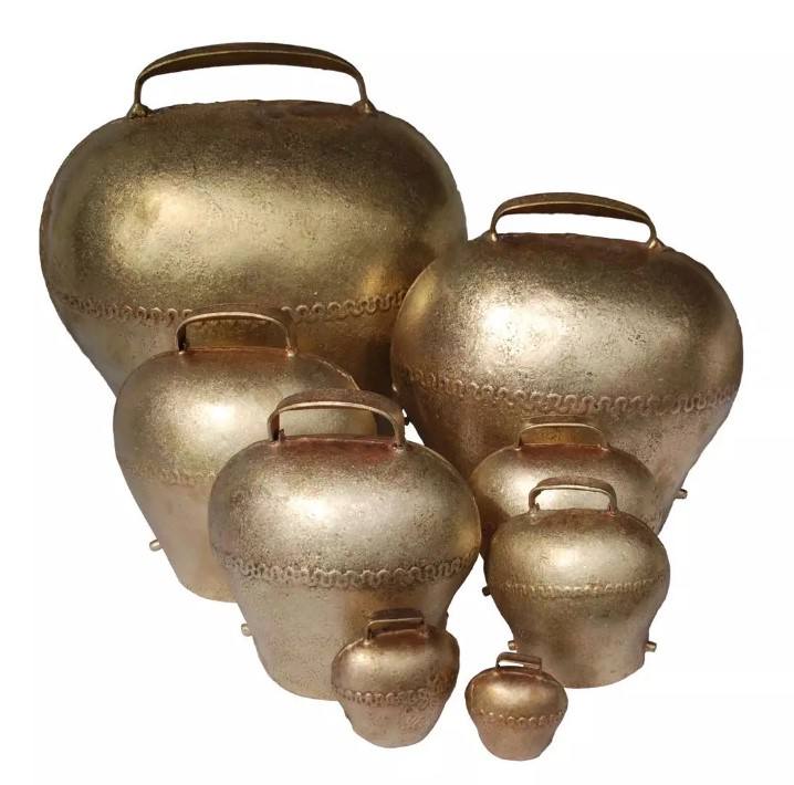 กระดิ่งวัวโบราณแบบแขวน ทำจากเหล็กหล่อเคลือบเงิน งานฝีมือแบบดั้งเดิม สำหรับใช้ในบ้านหรือในพิธีกรรมทางศาสนา