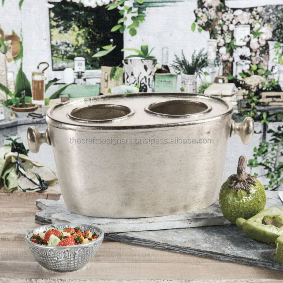ถังน้ำแข็งอะลูมิเนียมอัลลอยด์ทรงสี่เหลี่ยมขนาด 3 ลิตร สำหรับงานปาร์ตี้ งานเทศกาล หรือใช้ในบาร์ ดีไซน์หรูหราทันสมัยสไตล์วินเทจ ขายดี
