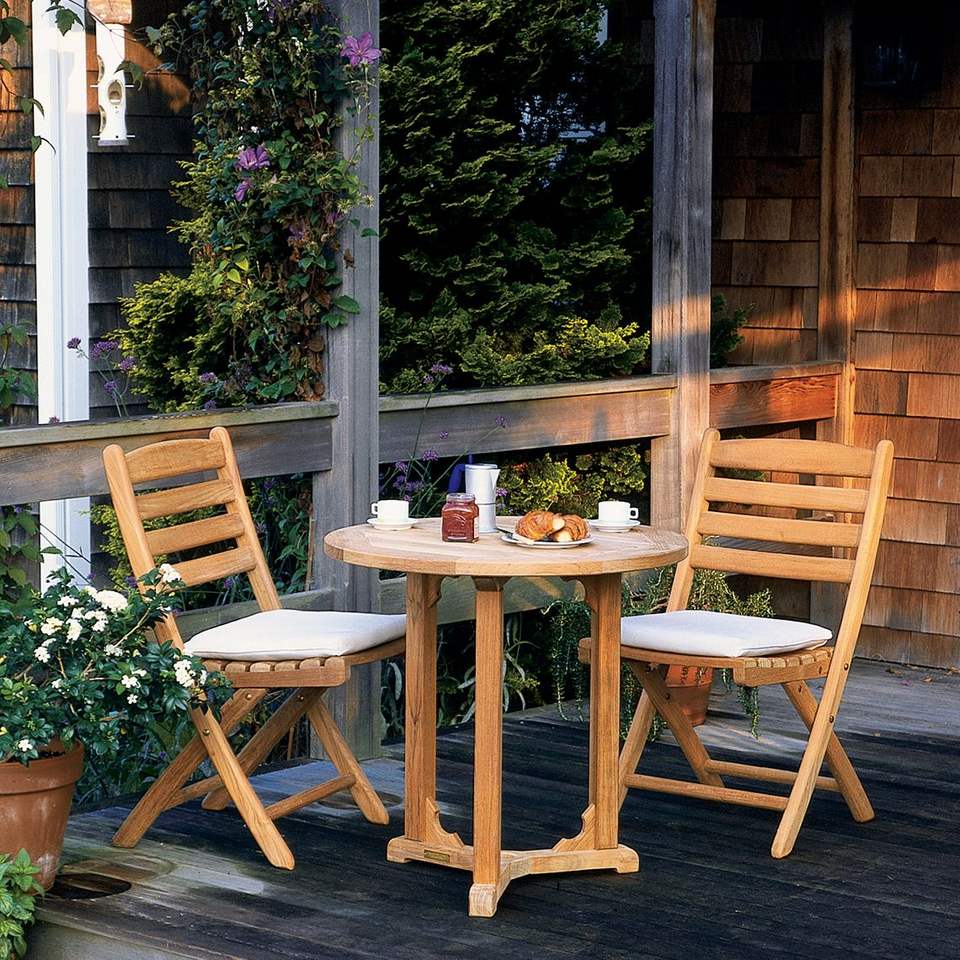 โต๊ะรับประทานอาหารกลางแจ้งทรงกลมไม้สักแท้คุณภาพพรีเมียมทันสมัย หน้าโต๊ะแบบระแนง ฐานแบบเสา ทนทานต่อสภาพอากาศ ประกอบสำเร็จ คุณภาพส่งออก