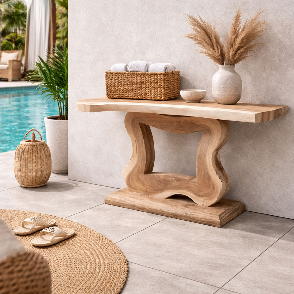 โต๊ะคอนโซลไม้เนื้อแข็งพรีเมียมทันสมัย เป็นมิตรกับสิ่งแวดล้อม ทนทาน ขาแกะสลักลายเฉพาะตัว เฟอร์นิเจอร์ไม้สักธรรมชาติ สำหรับโรงแรมและวิลล่า