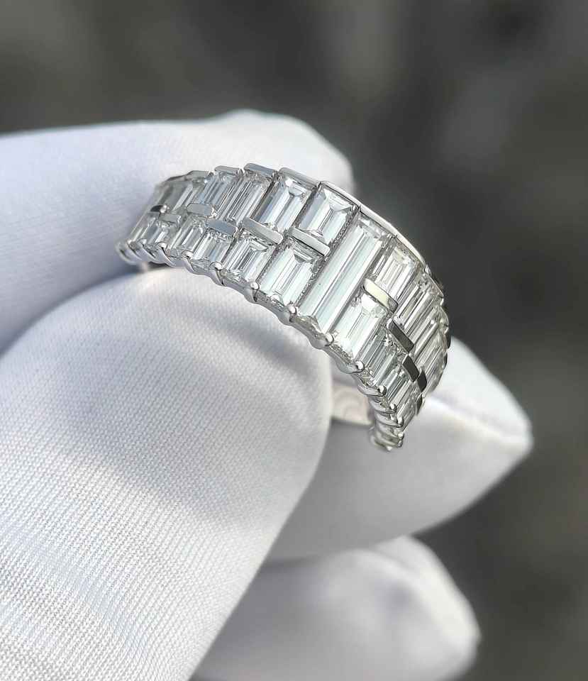 แหวนเพชรโมอิสซาไนต์ทรงบาแกตต์แบบครึ่งวง ดีไซน์หรูหรา สำหรับทุกเพศ ทำจากเงินแท้ 925 ของแท้ ของขวัญสุดพิเศษสำหรับแฟนสาว