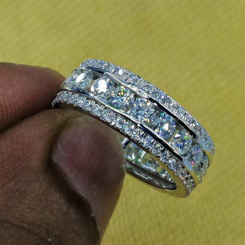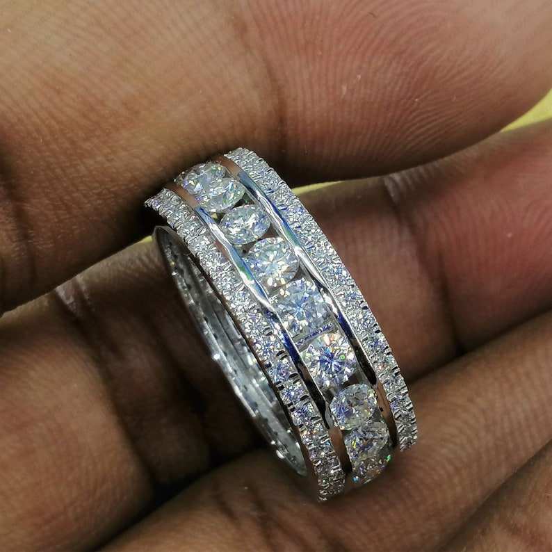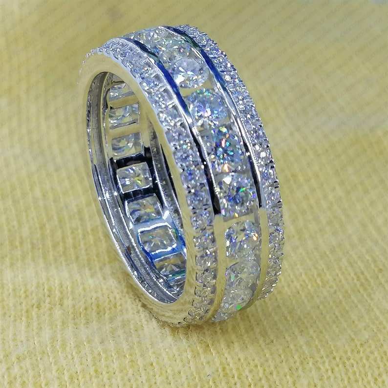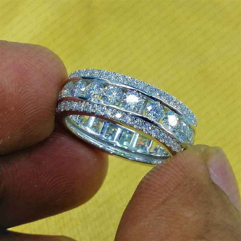 แหวนเพชรโมอิสซาไนต์ทรงกลมแบบเต็มวงสำหรับผู้หญิง เงินแท้ 925 ของแท้ สำหรับโอกาสครบรอบ ขอแต่งงาน หรือเป็นของขวัญสำหรับเจ้าสาว