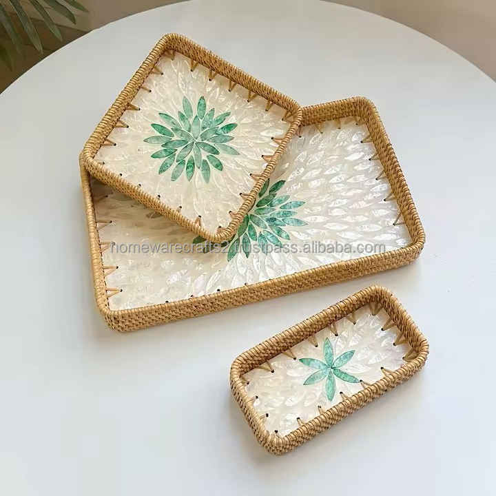 ถาดเสิร์ฟหวายฝังมุกสำหรับคุณแม่ถาดลายตารางหมากรุกเกรดพาณิชย์น้ำหนักเบาสำหรับโต๊ะจัดแสดงสุดหรู
