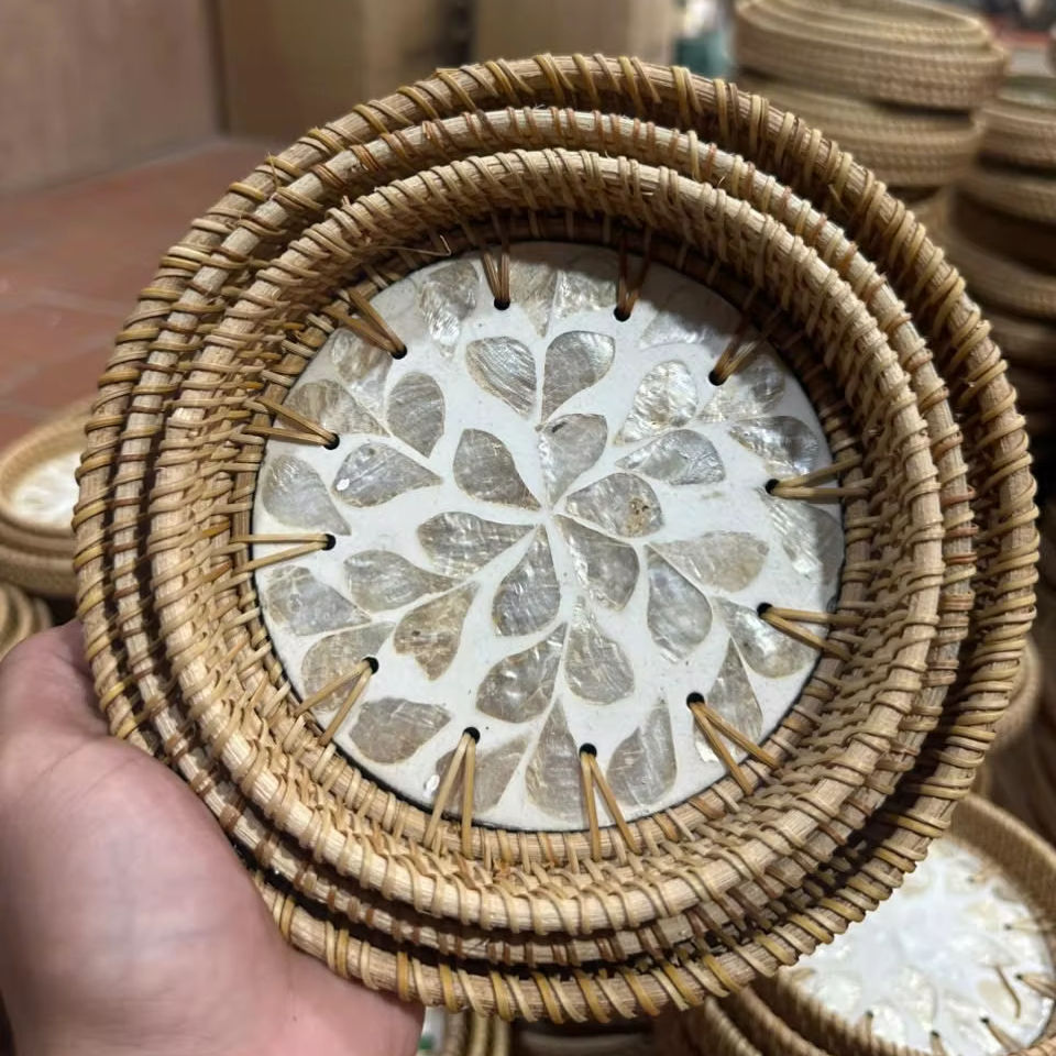 Premium Mother of Pearl Rattan Tray for Interior Decoration Tabletop Serving Woven Craft from Vietnam