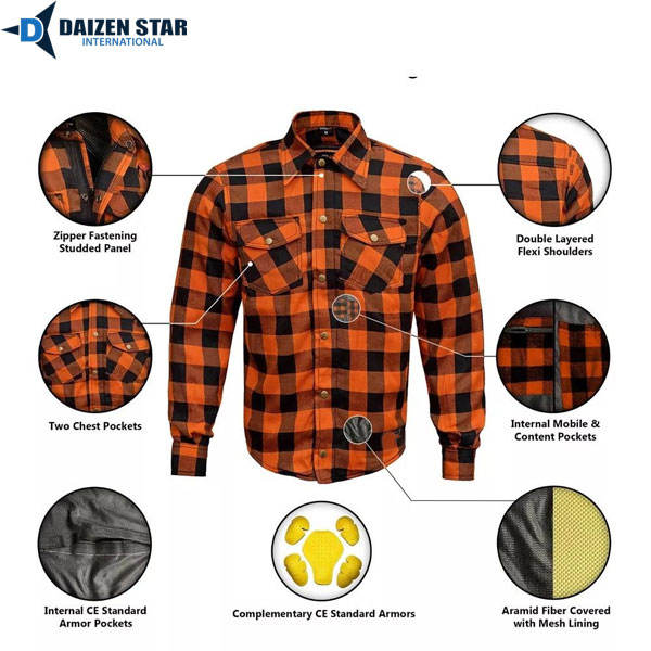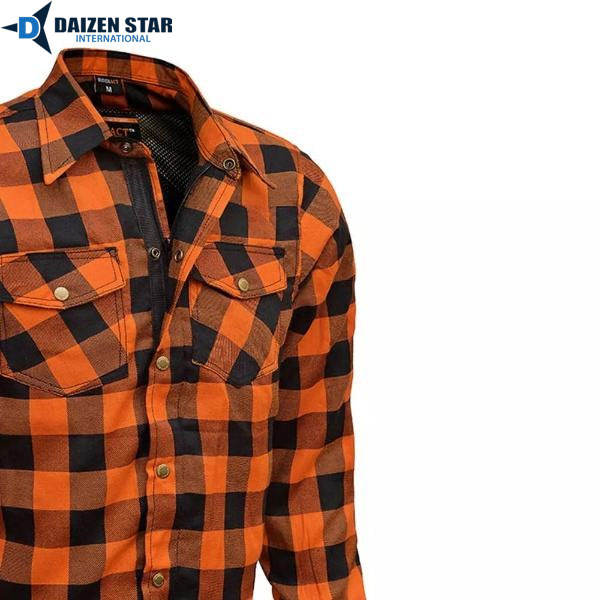 เสื้อเชิ้ตผ้าฟลานเนลสำหรับขี่มอเตอร์ไซค์ระดับพรีเมียม % ผ้าฝ้าย ระบายอากาศ กันลม ปรับแต่งสีและโลโก้ได้ ใช้ได้ทุกฤดู