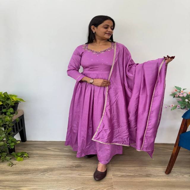 ชุดผ้าไหมพรีเมี่ยมพร้อมคอปักด้วยมือชุดปาร์ตี้3ชิ้นพร้อมปาลาซโซและ dupatta