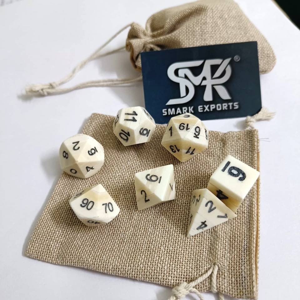 ชุดลูกเต๋ากระดูกควายทำด้วยมือสำหรับ RPG และบอร์ดโอกาส