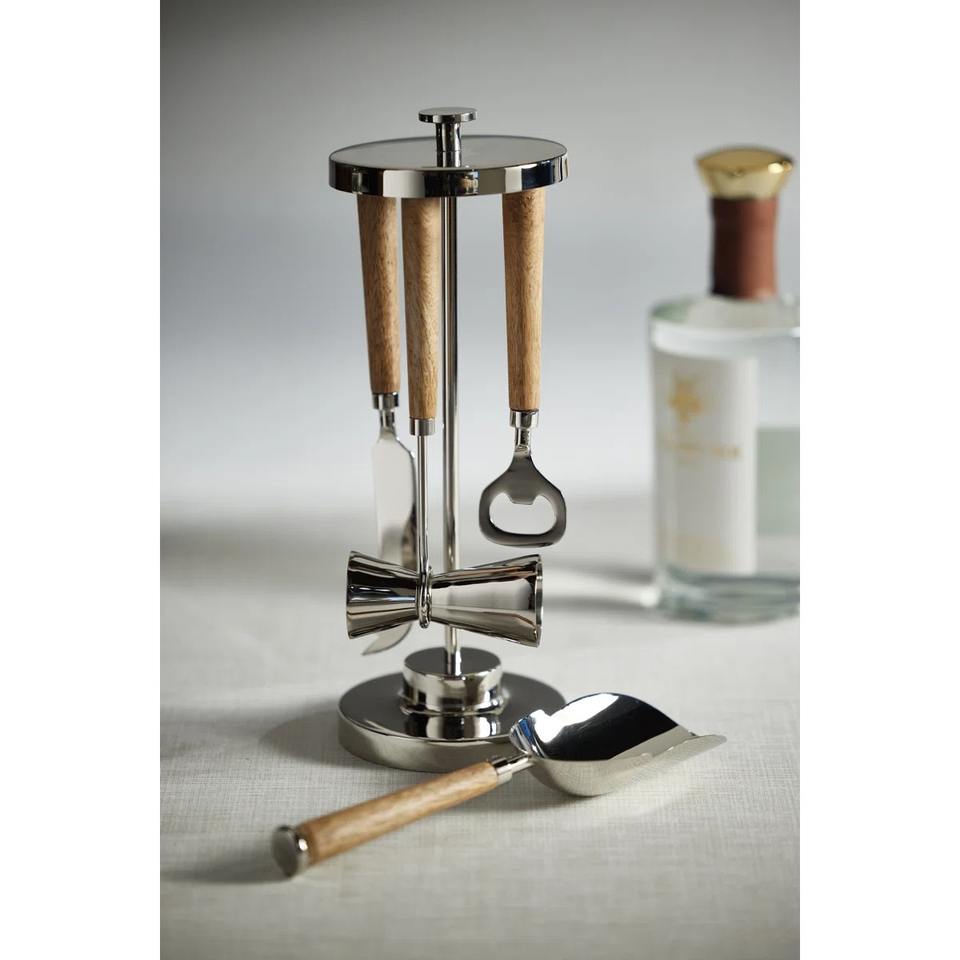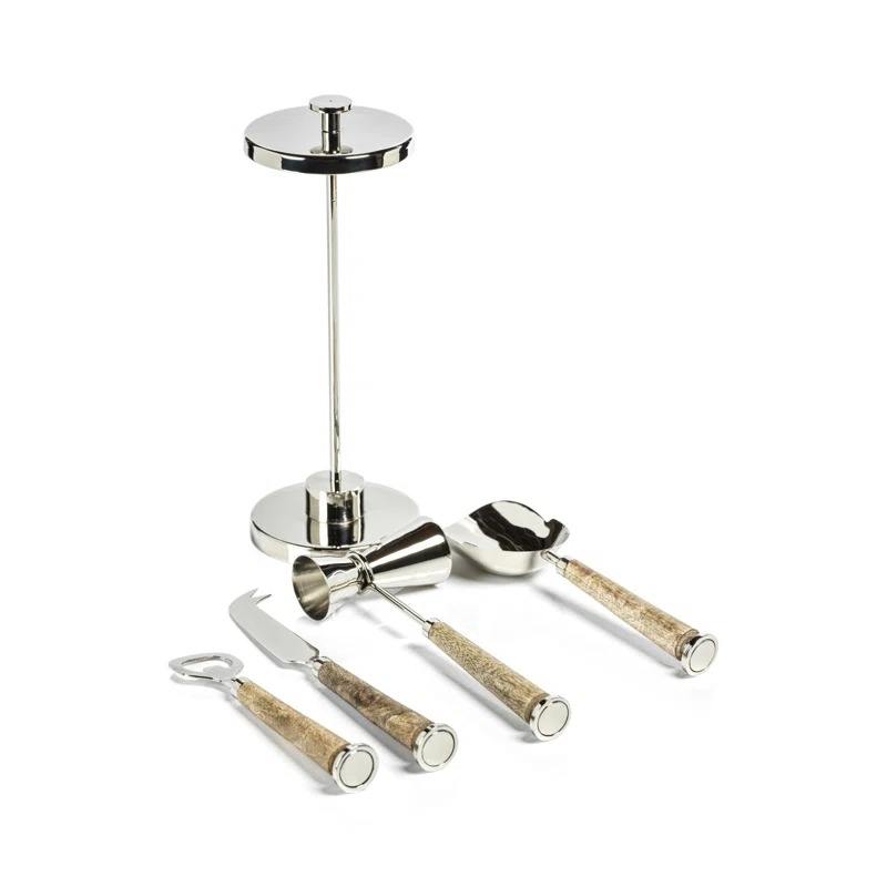 ชุดเครื่องมือบาร์พรีเมียมพร้อมด้ามจับแบบธรรมชาติ ตกแต่งด้วยสแตนเลสสตีล พร้อมขาตั้ง สำหรับคลับ บาร์ในบ้าน และงานอีเว้นท์ ขายส่งจากอินเดีย