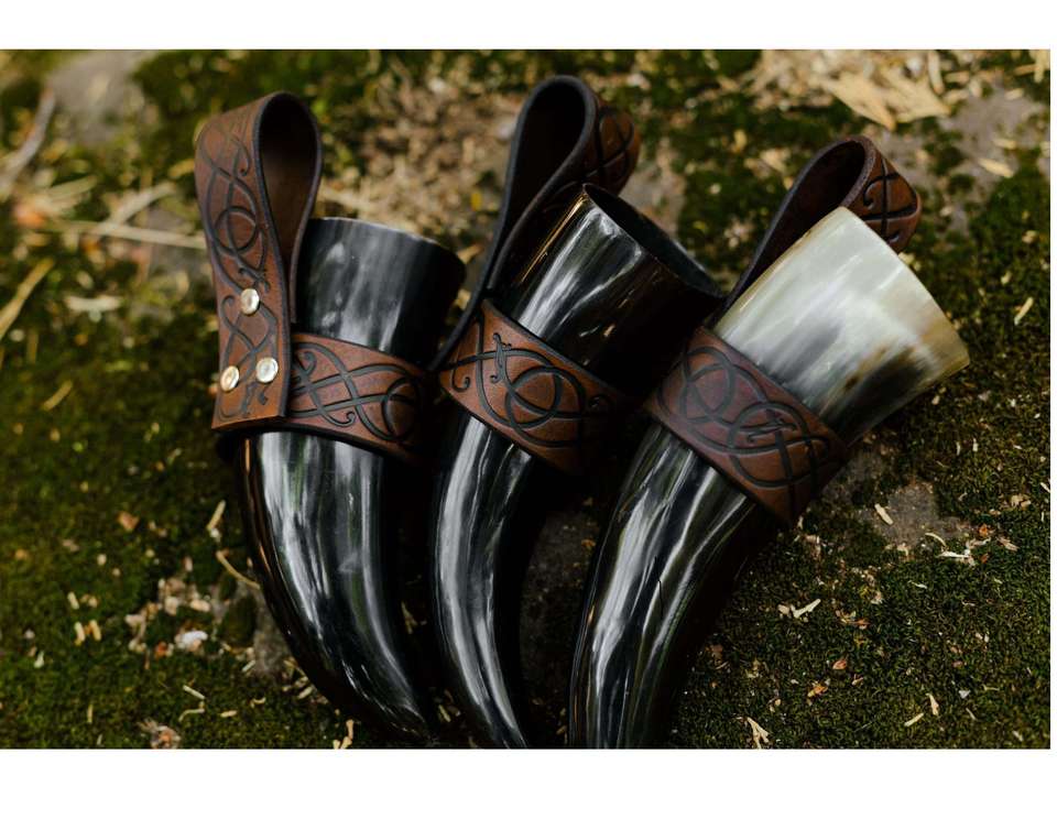 แก้วน้ำทำจากเขาสัตว์ธรรมชาติพรีเมียม พร้อมฝาไม้ไผ่ พกพาสะดวก ใช้ซ้ำได้ ผิวเรียบเนียน เหมาะสำหรับดื่มมี้ด เบียร์ และของสะสมสไตล์ไวกิ้ง