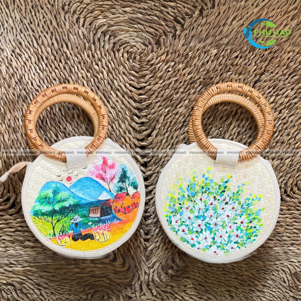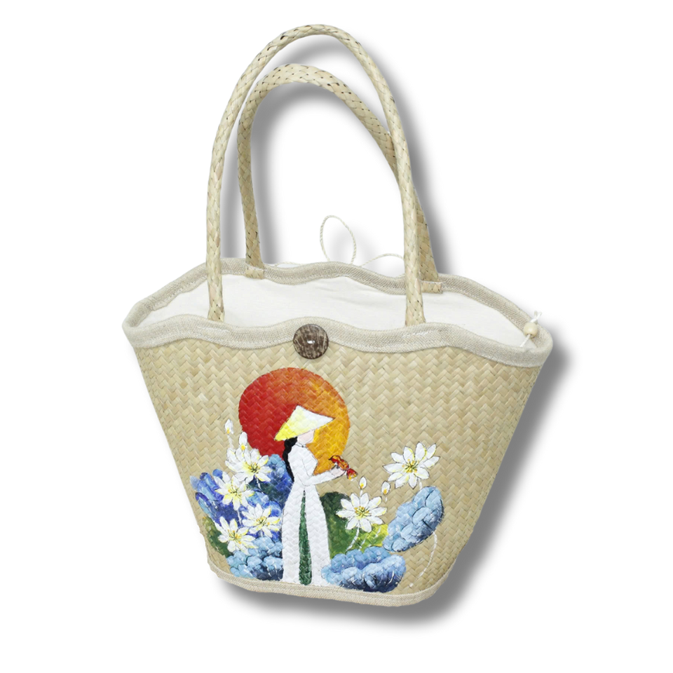 กระเป๋าโท้ทสานมือจากหญ้าทะเลธรรมชาติพรีเมียม ปูห่าว ขนาดใหญ่ ลายเพ้นท์ งานฝีมือเวียดนาม สไตล์ปิกนิก ผลิตในเวียดนาม