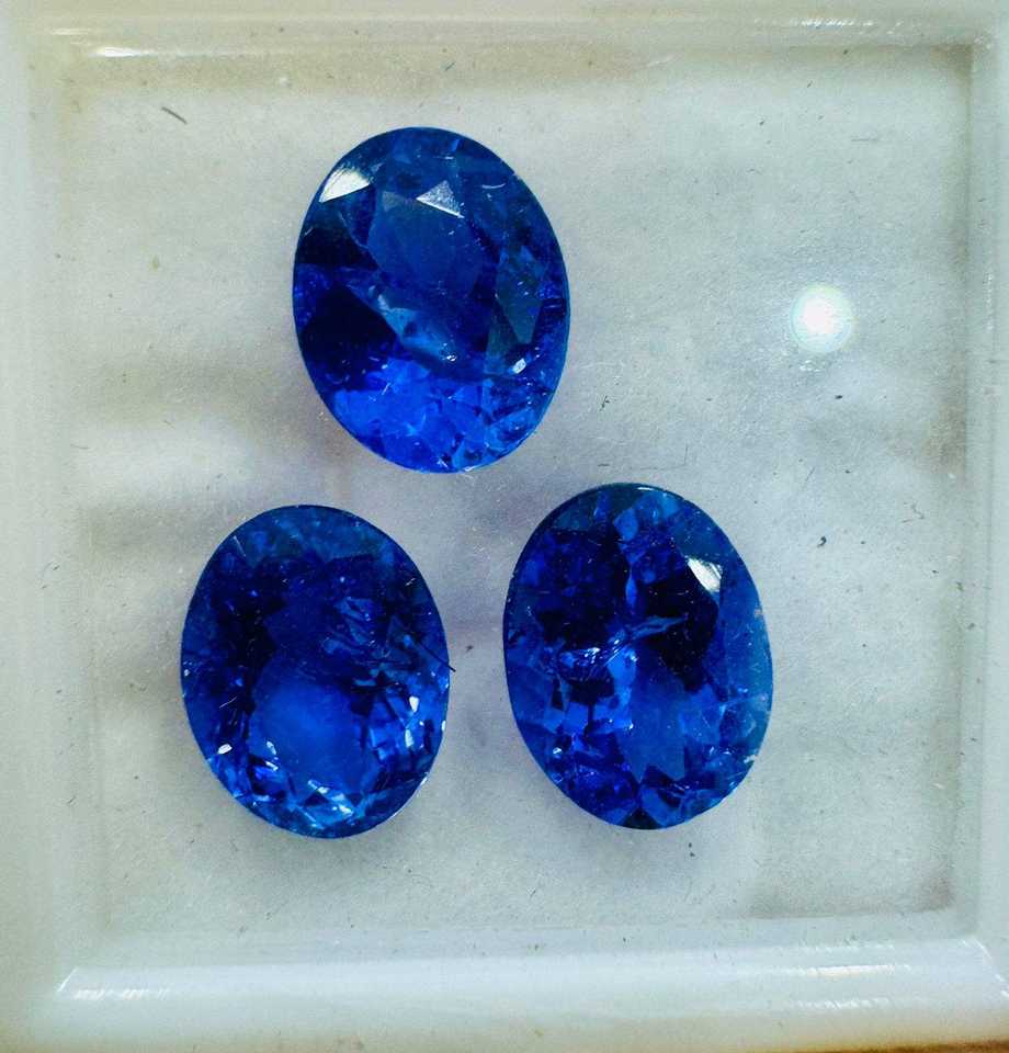 พลอยแทนซาไนต์ธรรมชาติทรงรีคุณภาพพรีเมียม สีม่วงน้ำเงิน คู่หนึ่ง สำหรับทำเครื่องประดับชั้นดีตามสั่ง