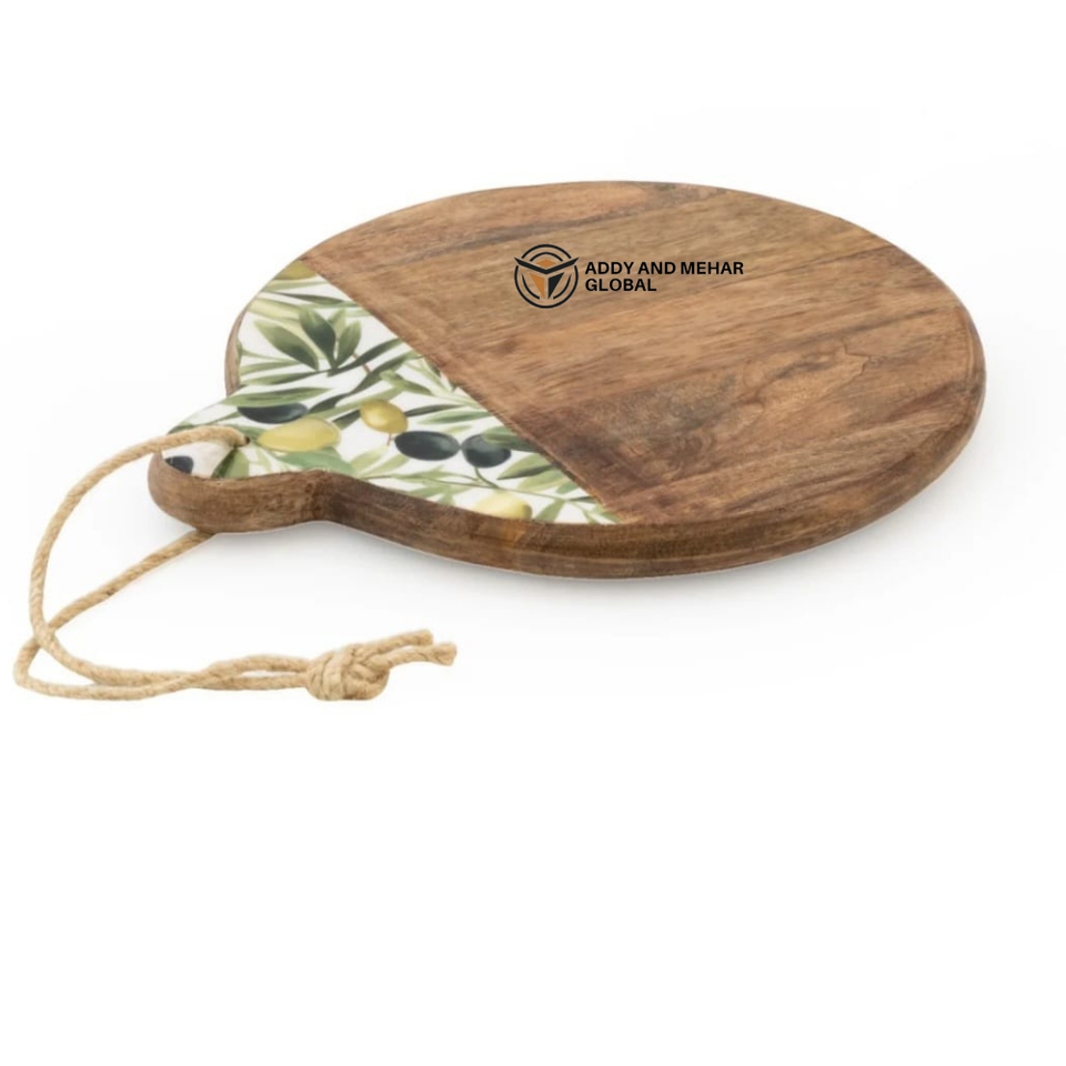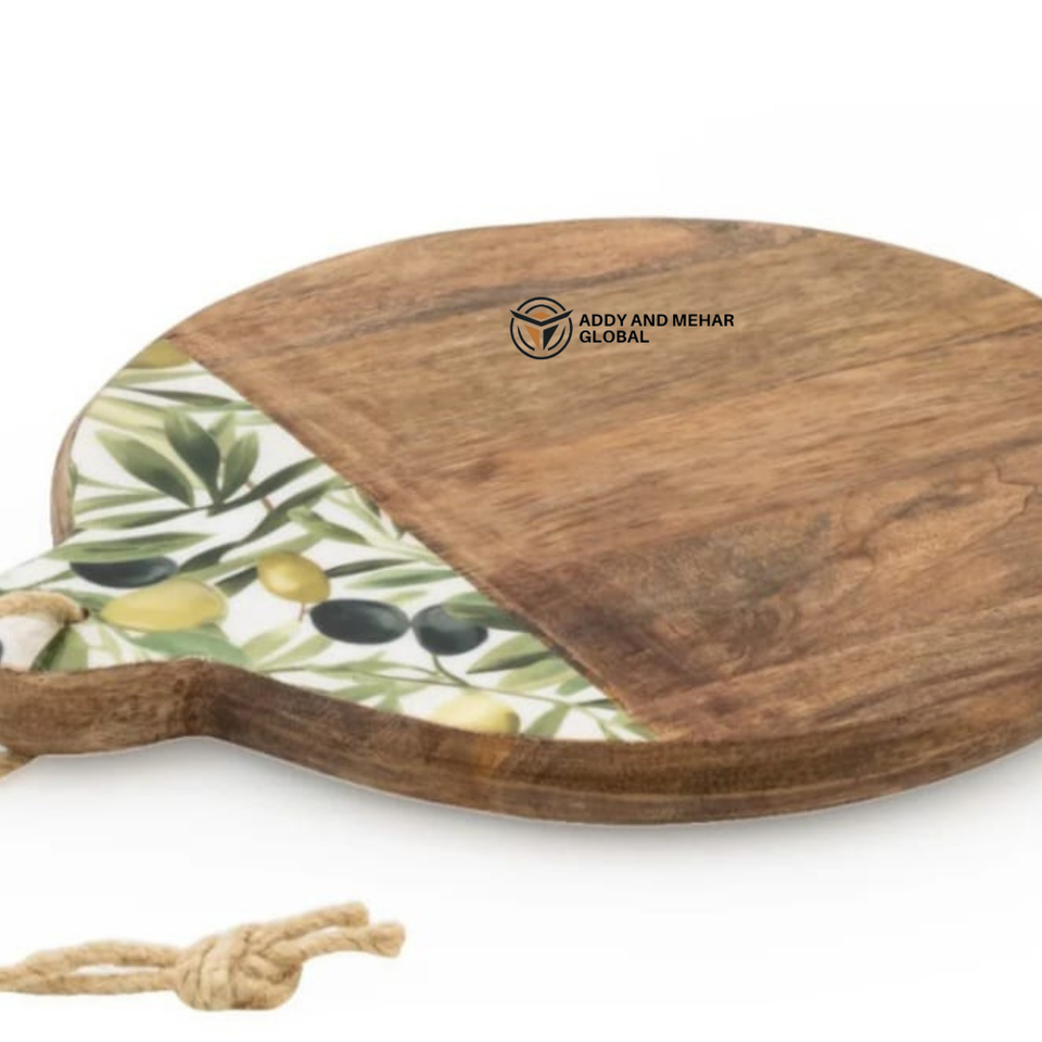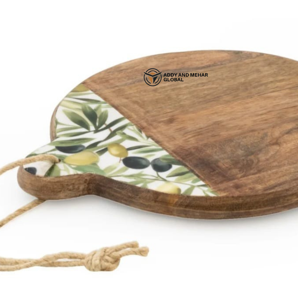 เขียงไม้ธรรมชาติพรีเมียมพร้อมเคลือบเอนาเมลลายดีไซน์รูปทรงสี่เหลี่ยมผืนผ้า หนา 1.5 ซม. ทำความสะอาดง่ายและปลอดสารพิษ