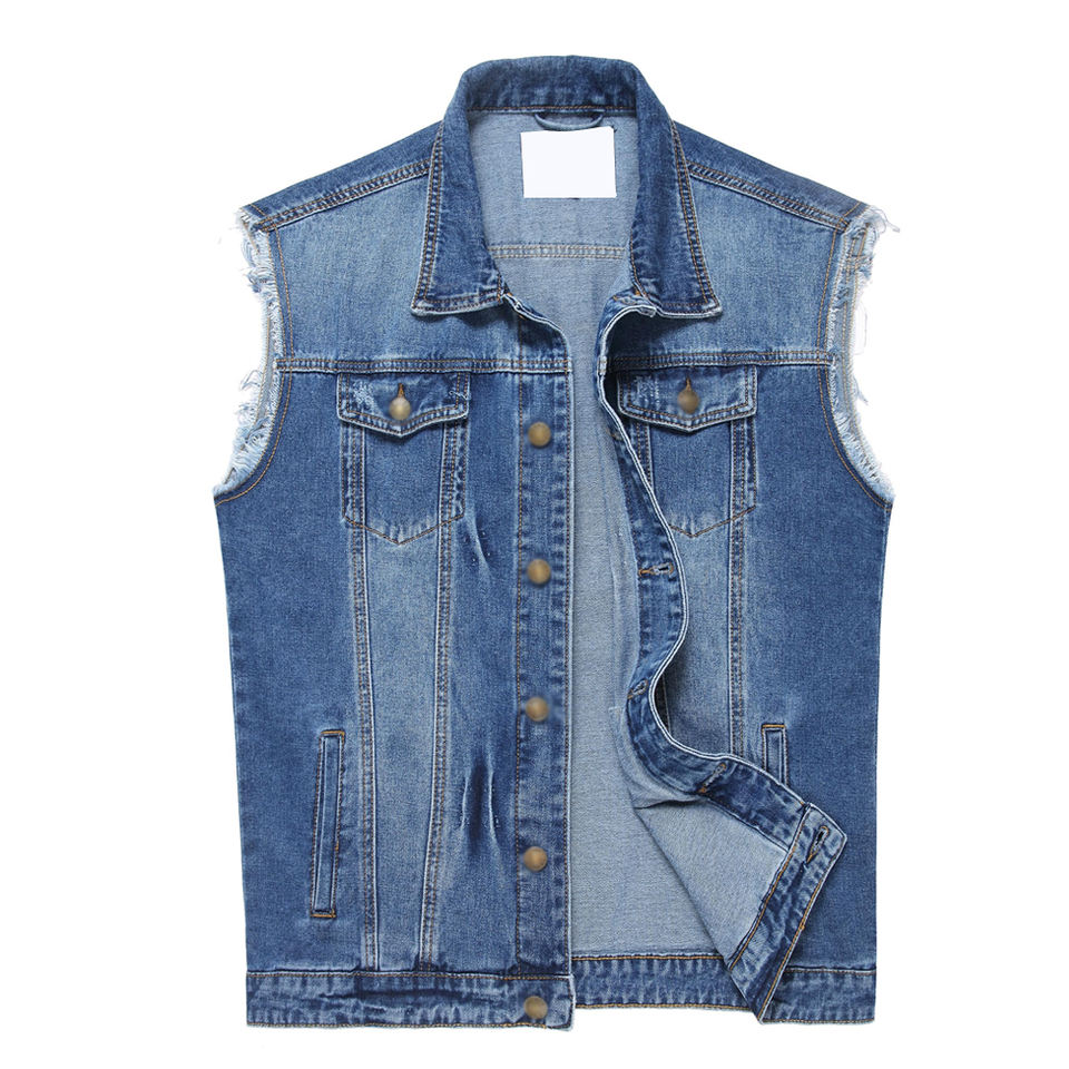 เสื้อกั๊กยีนส์บางสำหรับผู้ชายดีไซน์แบบลำลองระบายอากาศได้ดี