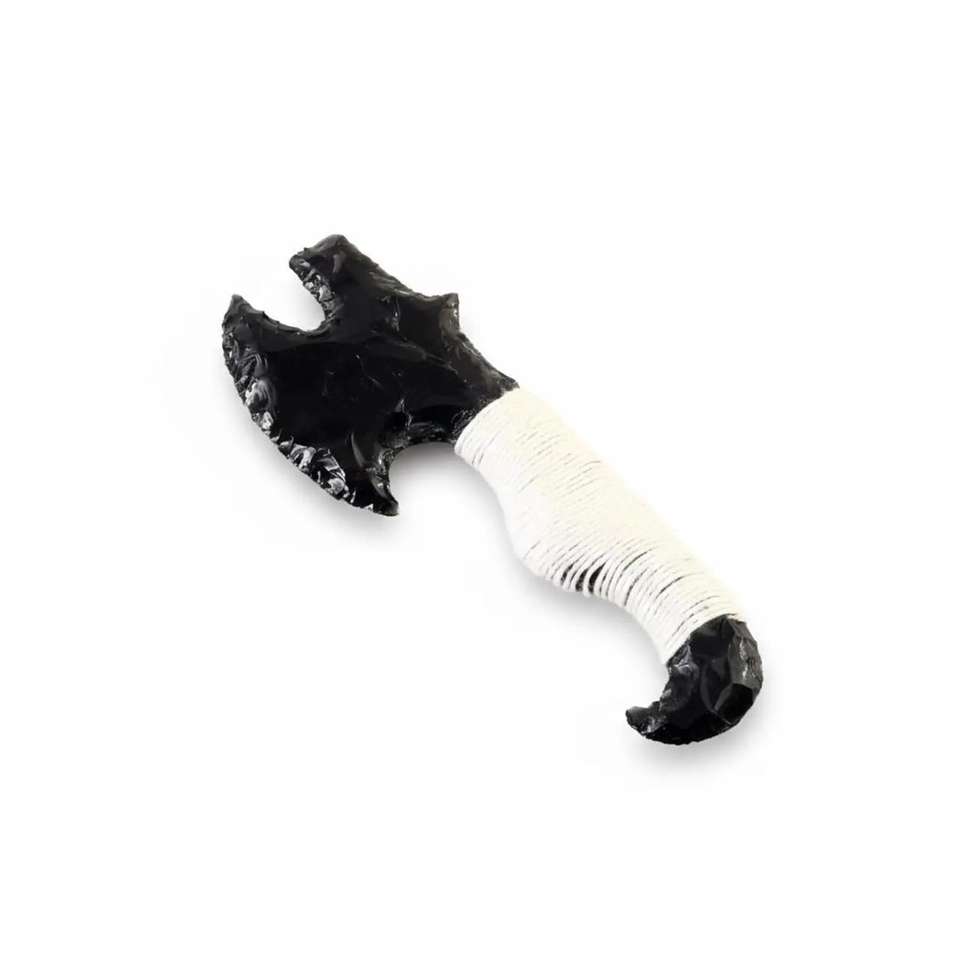 ขวานหินออบซิเดียนสีดำธรรมชาติแกะสลักด้วยมือพร้อมด้ามไม้ ของขวัญคริสตัลระดับพรีเมียม