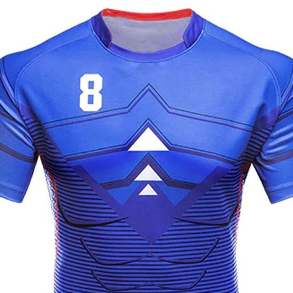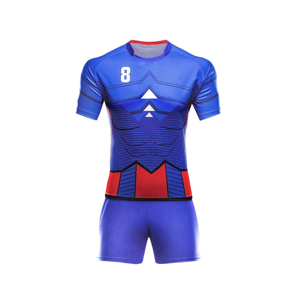 ชุดรักบี้แขนสั้นของผู้ชายเสื้อทีมที่มีคุณภาพสูงผ้าระบายอากาศได้ดีเสื้อทีมที่กำหนดเองขายส่งรักบี้คลับกีฬา