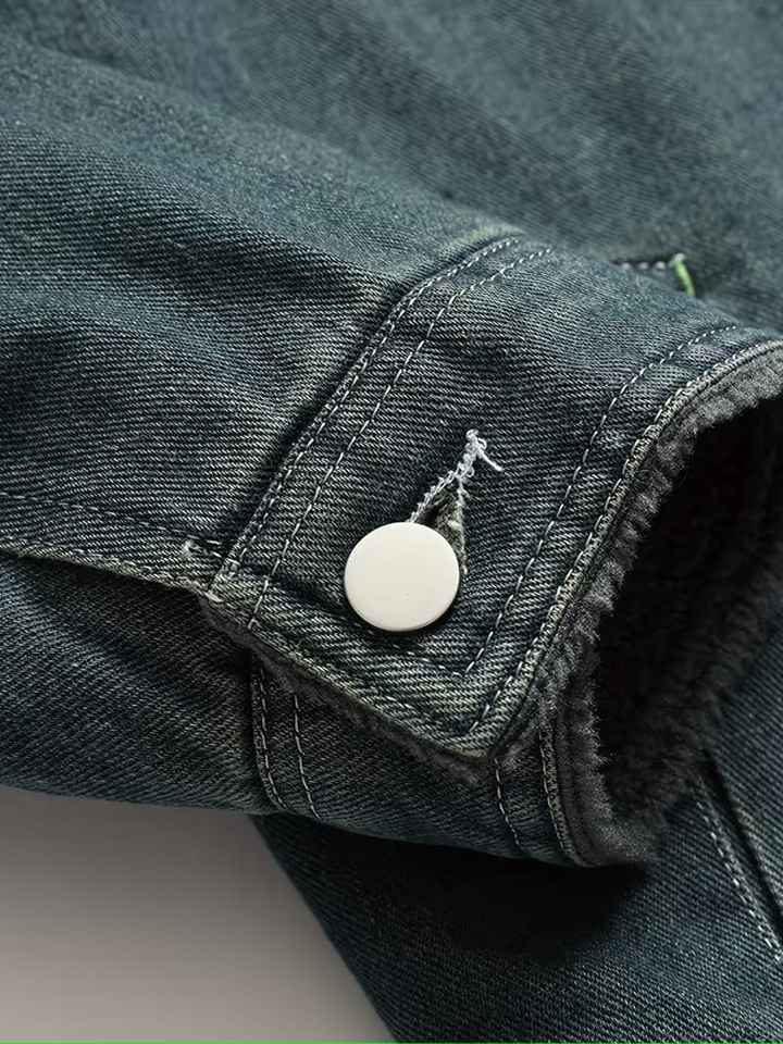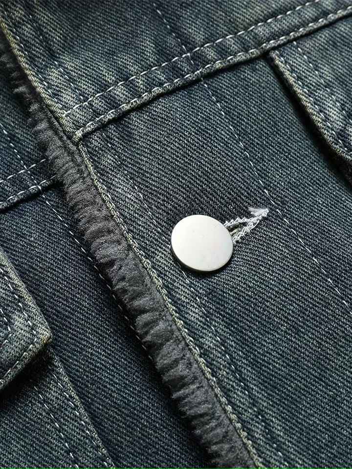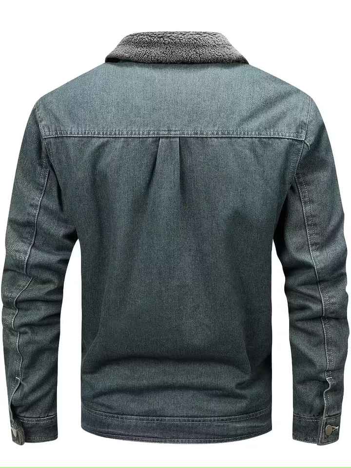 แจ็คเก็ตยีนส์ผู้ชายสไตล์ใหม่พรีเมียม คอปกขนสัตว์ ทรงเข้ารูป แขนยาว มีกระเป๋าหลายช่อง แฟชั่นลำลองกลางแจ้ง สไตล์คลาสสิก