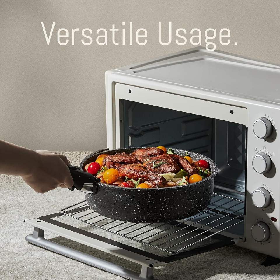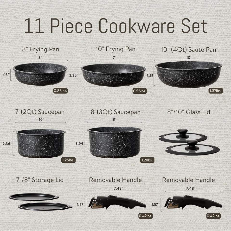 ชุดเครื่องครัวเคลือบกันติดแบบพรีเมียม พร้อมด้ามจับถอดได้ กระทะและหม้อหินไมแฟน ฐานอะลูมิเนียมอัลลอยด์ ใช้กับเตาอบได้