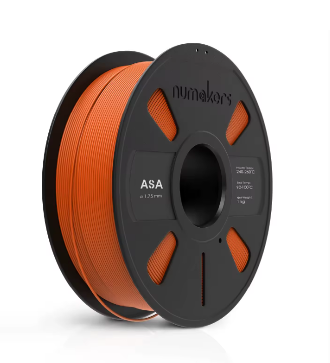 ไส้พิมพ์ 3 มิติ พรีเมียม นูเมกเกอร์ ASA ขนาด 1.75 มม. น้ำหนัก 1 กก. สีส้มไหม้ ความเหนียวสูง ยืดหยุ่นปานกลาง ทนความร้อนได้ถึง 95 องศาเซลเซียส