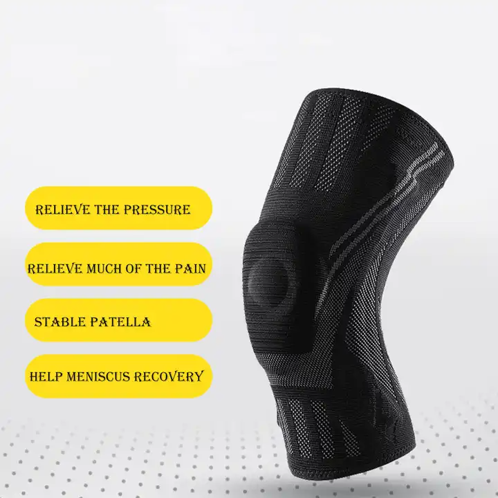 อุปกรณ์พยุงเข่าทำจากไนลอนแบบพรีเมียมพร้อมสายรัดรัดสำหรับเล่นกีฬาและออกแบบกันลื่นสำหรับฟิตเนสวิ่งบาสเก็ตบอลปั่นจักรยาน