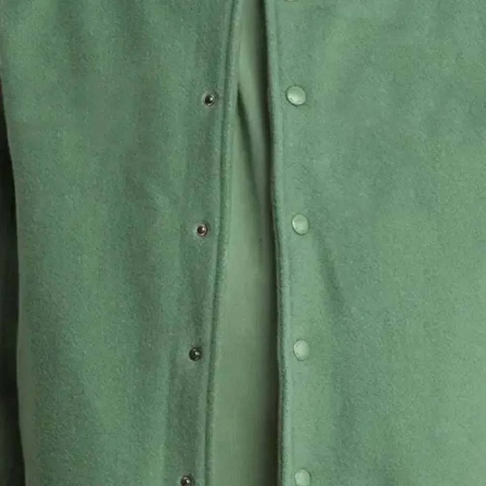 แจ็คเก็ตวาร์ซิตี้ขนสัตว์คุณภาพพรีเมียม OEM ขายส่ง ออกแบบเองได้ สตรีทแวร์คุณภาพสูง สไตล์วินเทจ สีเขียวมัทฉะ เสื้อคลุมสำหรับใส่ไปเรียนมหาวิทยาลัย