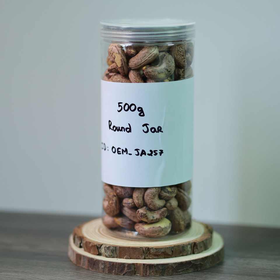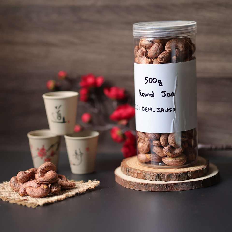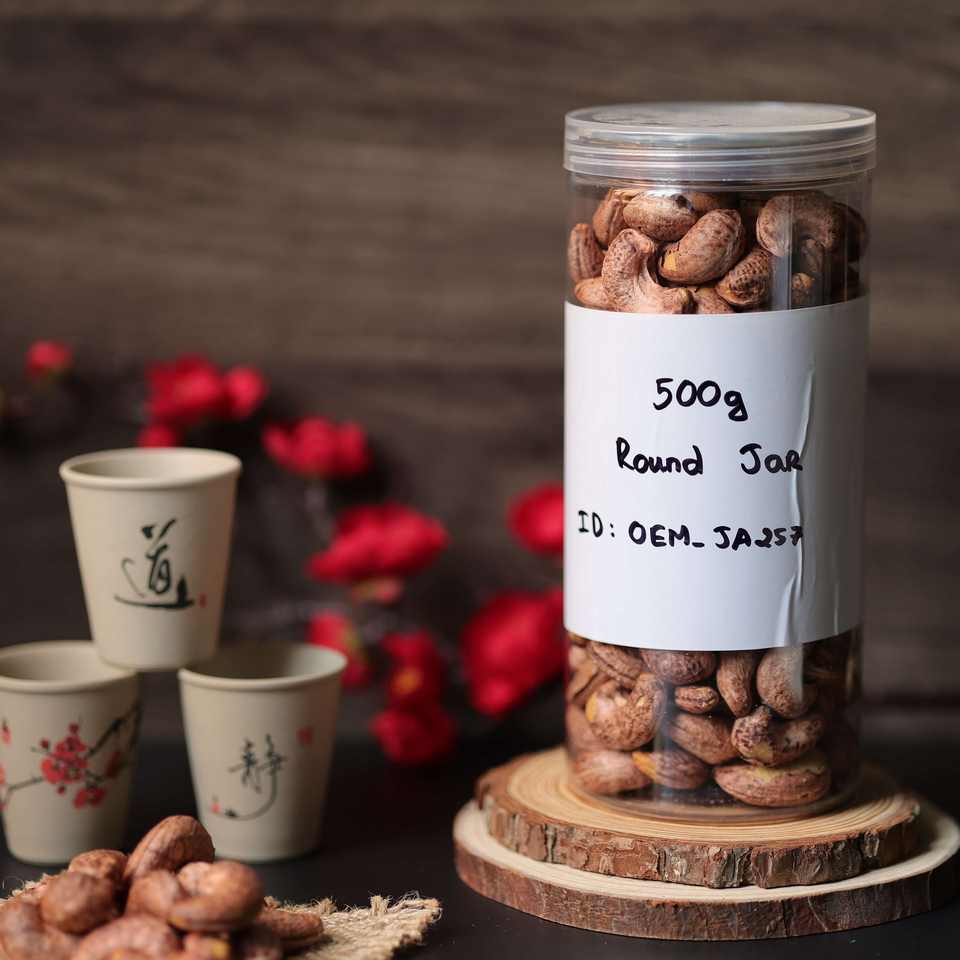เม็ดมะม่วงหิมพานต์อบแห้งออร์แกนิกระดับพรีเมียมจากเวียดนาม บรรจุในขวดกลม 500 กรัม (ฝาพลาสติกปิดผนึกอะลูมิเนียมแบบเปิดง่าย) - ราคาโรงงานแข่งขันได้