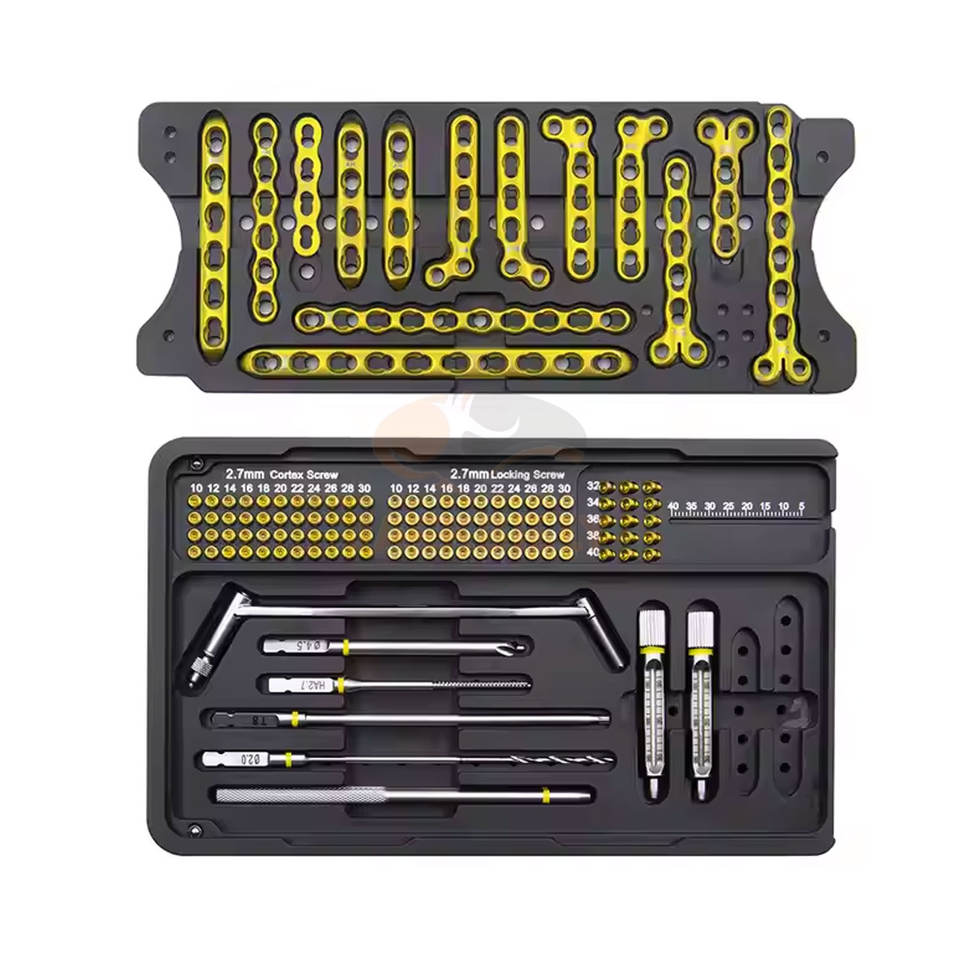 ชุดชิ้นส่วนกระดูกขนาดเล็ก2.7มม. ชุดล็อกแผ่นสแตนเลสชุดผ่าตัดแบบสมบูรณ์ชิ้นส่วนกระดูกแพทย์ขนาดเล็กแบบพรีเมี่ยม