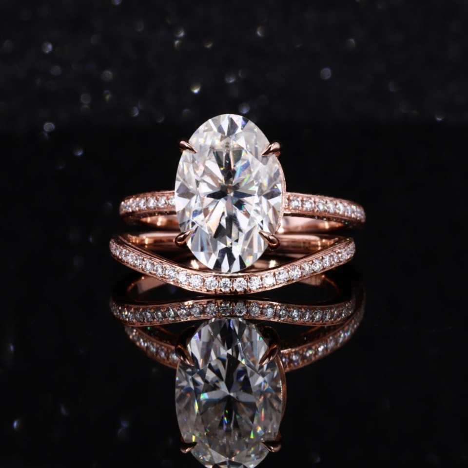 แหวนหมั้นเพชรทรงรีแบบซ่อนพร้อมชุดแหวนหมั้นเงินแท้สำหรับงานแต่งงานเครื่องประดับเพชรทรงวงรีแบบพรีเมี่ยม