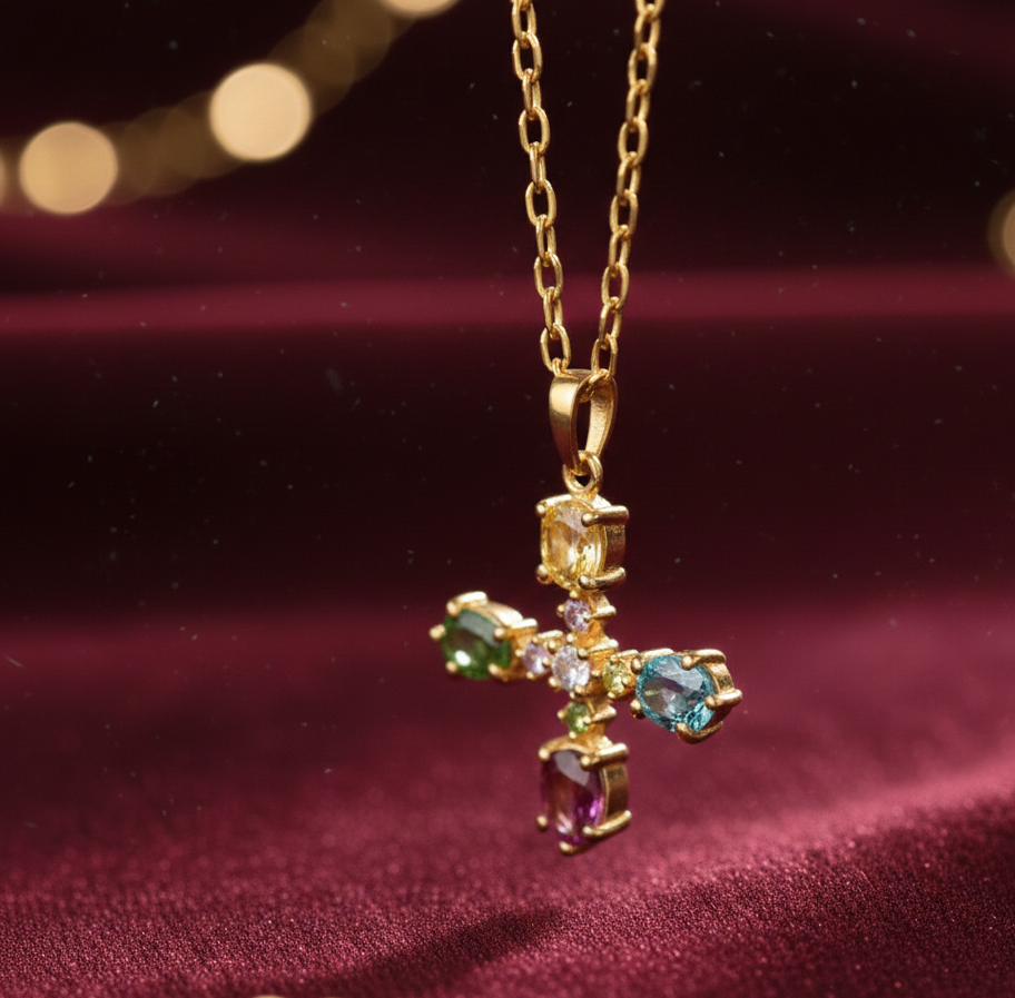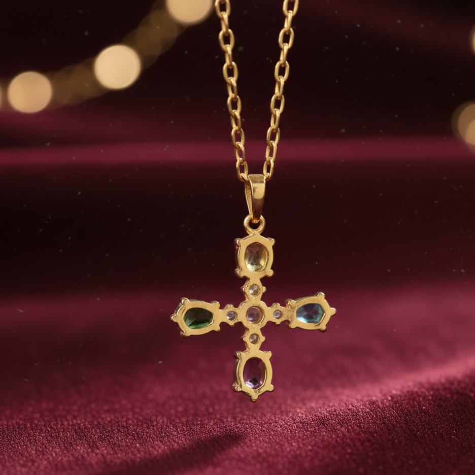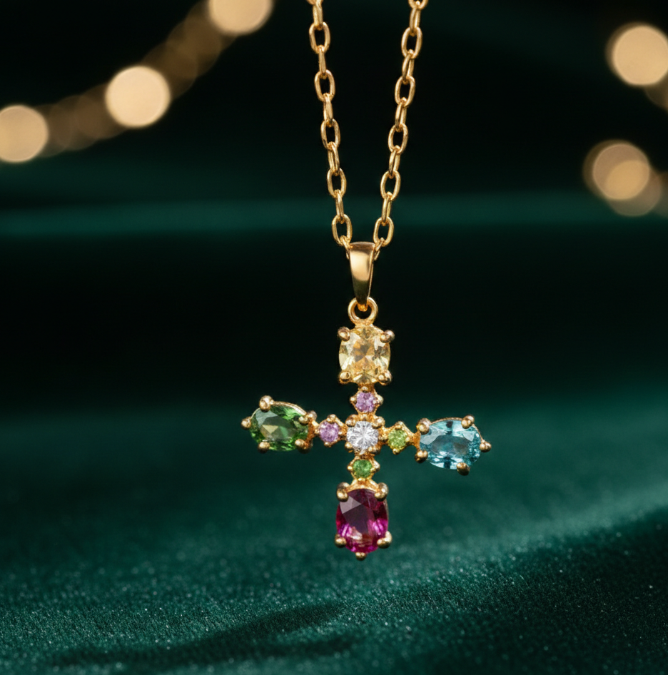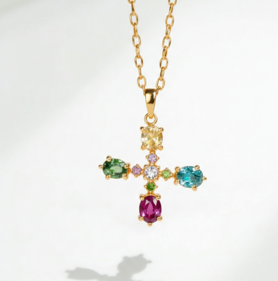 สร้อยคอจี้รูปไข่ประดับพลอยหลากสีพร้อมเพชร CZ เงินแท้ 925 ชุบทอง 18K ดีไซน์เนอร์สำหรับผู้หญิง