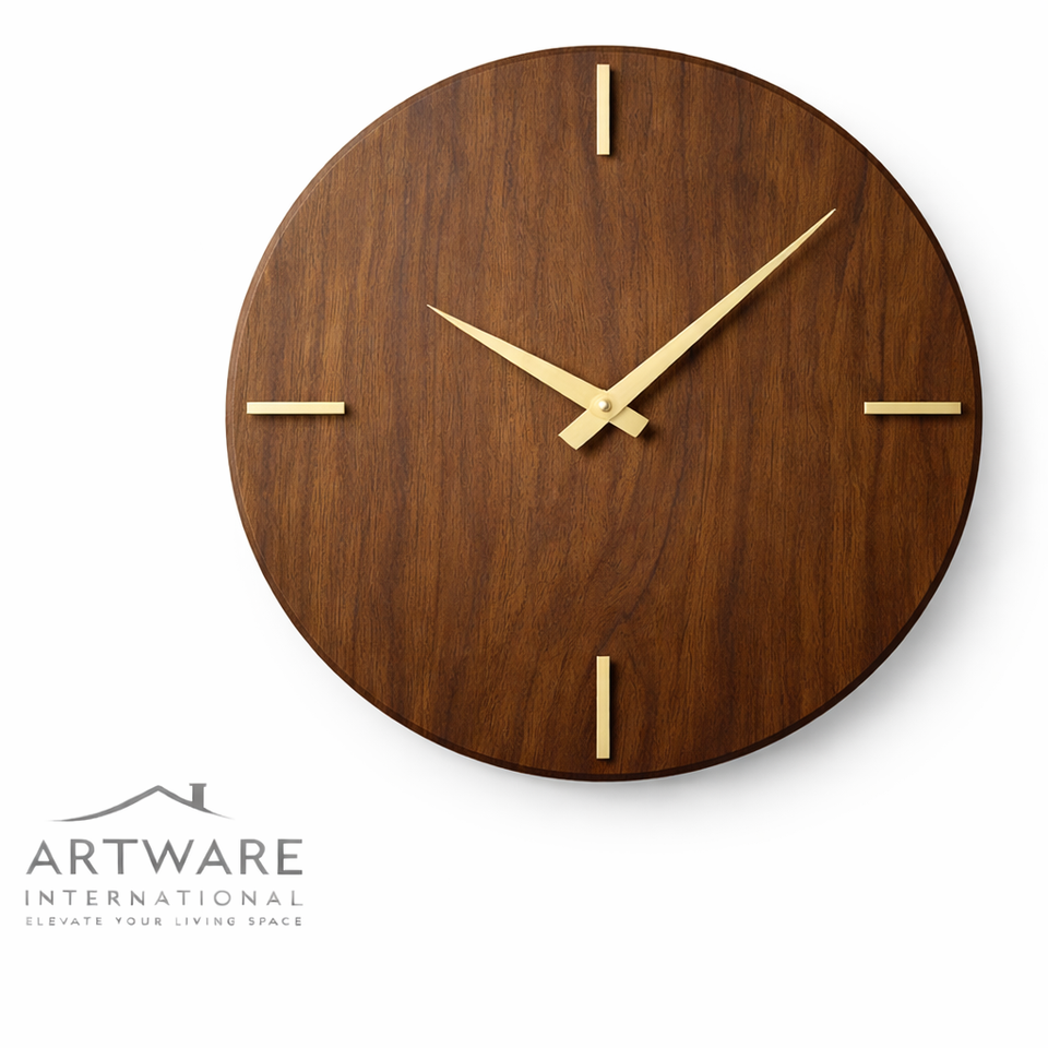 นาฬิกาแขวนผนังไม้รูปวงรีพรีเมียม พร้อมเข็มโลหะสีทอง ระบบเงียบไร้เสียง ดีไซน์ทันสมัย เหมาะสำหรับตกแต่งบ้านและห้องนั่งเล่น