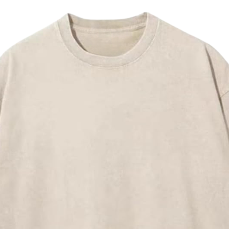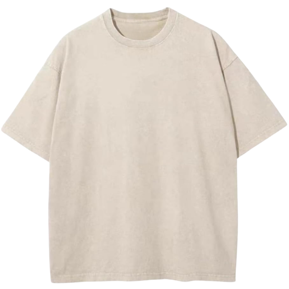 เสื้อยืดผ้าฝ้ายสีเบจสำหรับผู้ชายทรงโอเวอร์ไซซ์สีเบจ