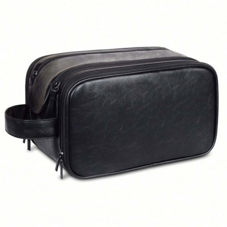 กระเป๋าใส่ของใช้ส่วนตัวสำหรับผู้ชาย ทำจากหนัง PU คุณภาพพรีเมียม พิมพ์ลายซิลค์สกรีน ขนาดใหญ่ จุของได้เยอะ เหมาะสำหรับการเดินทาง ใช้ในธุรกิจ และเป็นของขวัญ รับทำแบรนด์ตามสั่ง