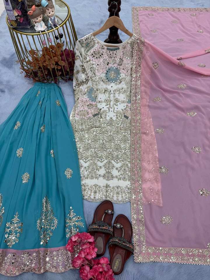 SHARARA WORK:With Embroidery 5 mm Sequence Work With mirror Hand Work-