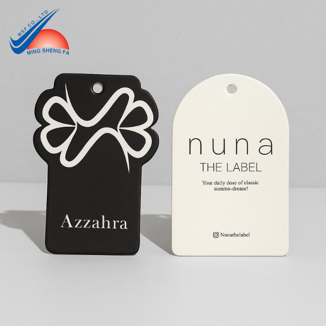 ป้ายแขวนกระดาษพรีเมียม - พิมพ์โลโก้ตามสั่ง - ป้ายแบรนด์เสื้อผ้าสำหรับร้านเสื้อผ้า ร้านแฟชั่น และบรรจุภัณฑ์ร้านบูติกออนไลน์