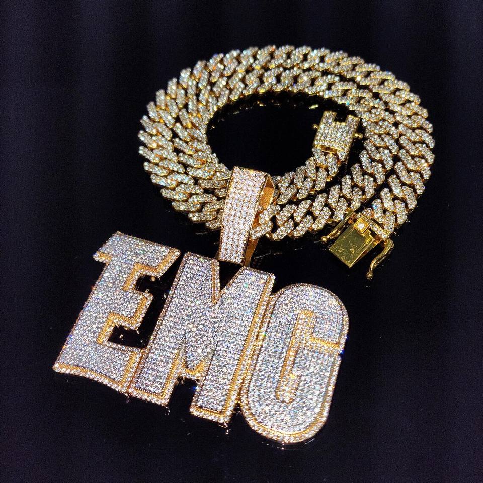 สร้อยคอพรีเมียมสลักชื่อแบบส่วนตัว ประดับเพชร ตัวอักษรแบบกำหนดเองบนโซ่คิวบัน ทำจากเงินแท้ 925 เครื่องประดับฮิปฮอป