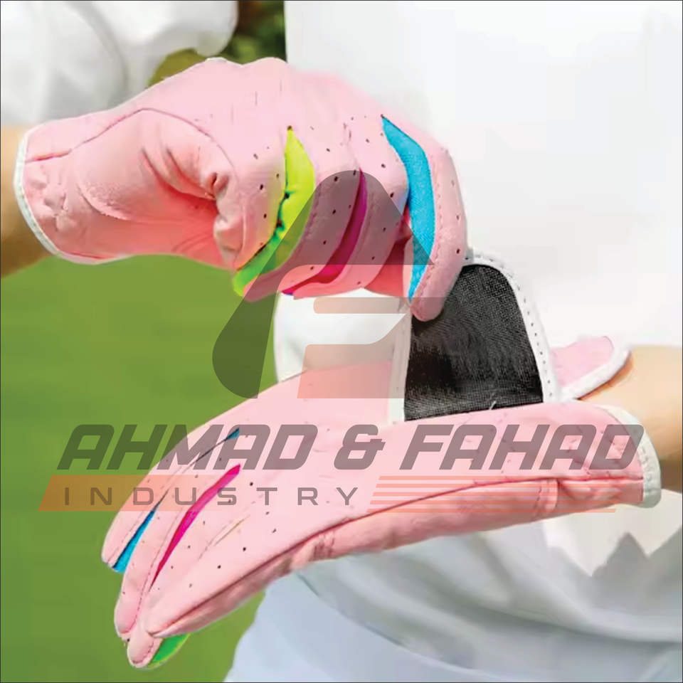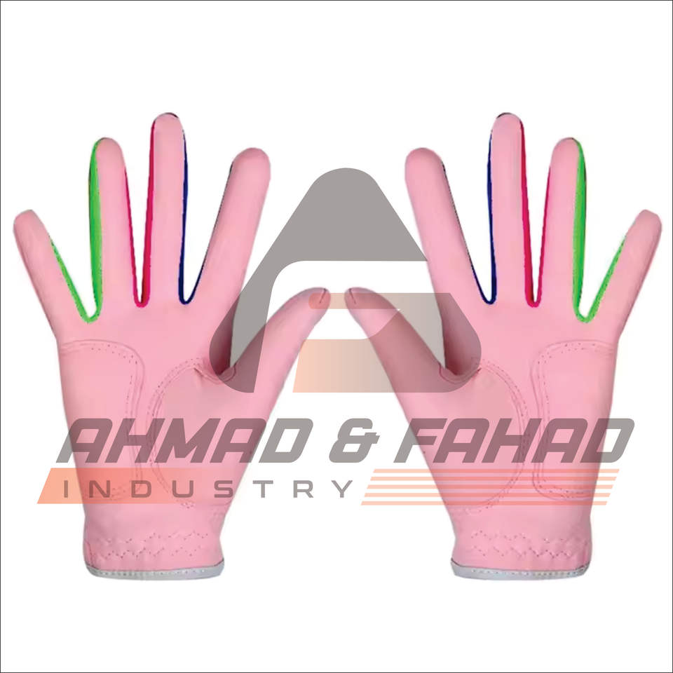 ถุงมือกอล์ฟหนัง cabretta สีชมพูพรีเมี่ยมนุ่มและระบายอากาศได้ดีพร้อมที่จับมือหนังแท้สำหรับเล่นกีฬา