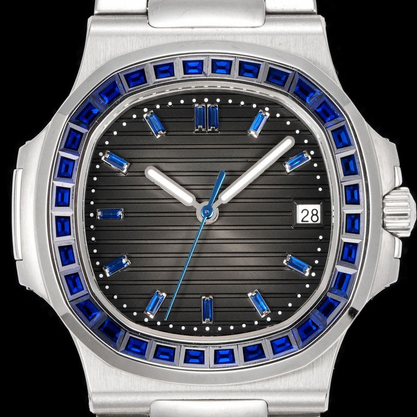นาฬิกาข้อมือดีไซน์สปอร์ตหรูหรา พรีเมียมแพลตตินั่ม ตัวเรือนเหล็ก 316L หน้าปัดลายคลื่นแนวนอน เหมาะสำหรับธุรกิจ การเดินทาง และการพักผ่อน