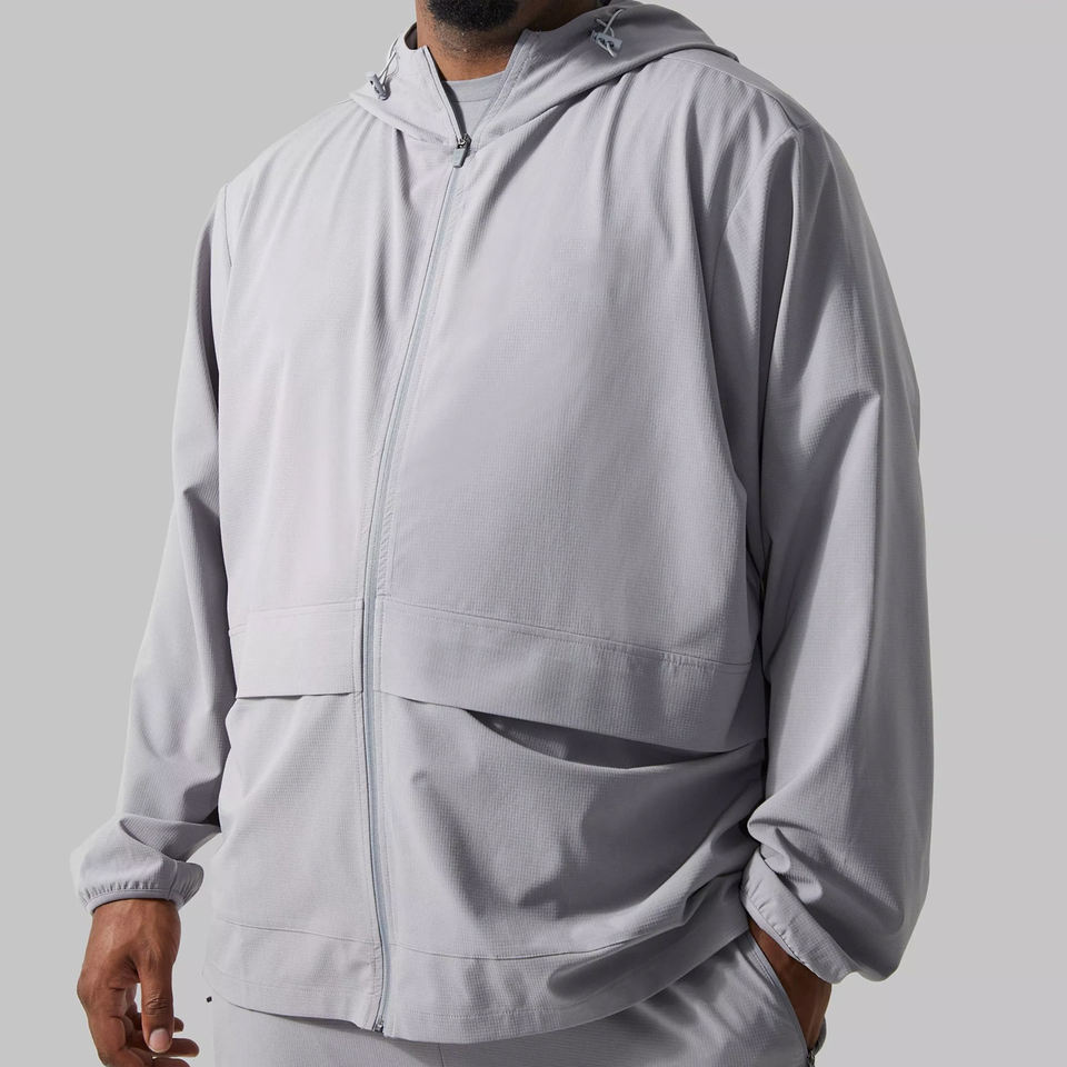 เสื้อกันลมออกกำลังกายแบบแอคทีฟยูนิเซ็กส์แบบพรีเมี่ยมน้ำหนักเบาทนทานมีสไตล์แจ๊กเก็ตพร้อมรายละเอียดกระเป๋าของแผนก